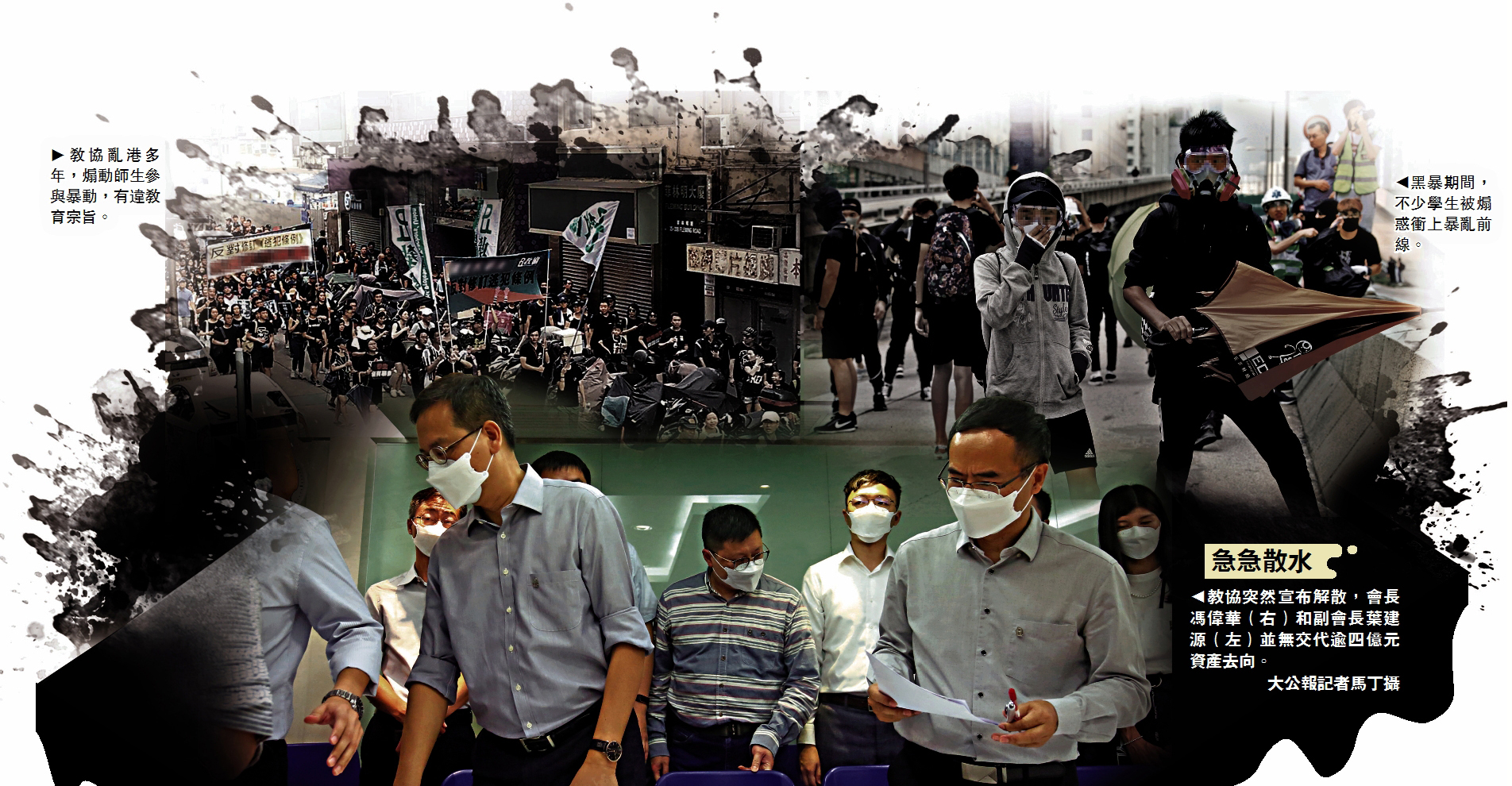 (大公報 記者 龔學鳴)長期反中亂港、近日「突然愛國」的香港教育專業人員協會(教協),昨日突然解散。該會會長馮偉華宣布該項決定,卻沒有交代坐擁超過四億港元的巨額資產如何處理,引起公眾不滿。