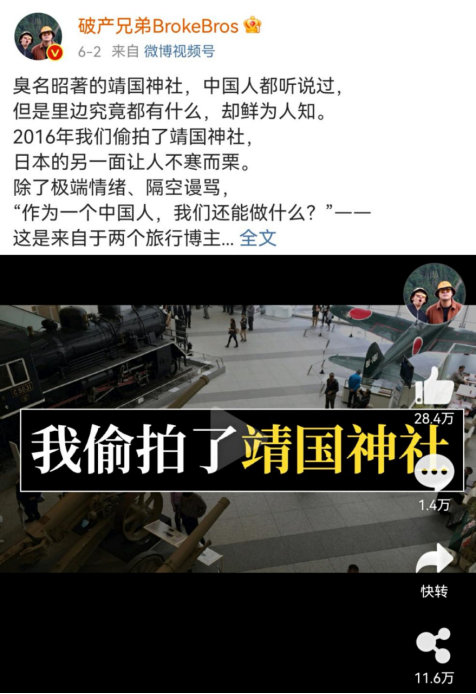 在網上分享了《我偷拍了靖國神社》的視頻,