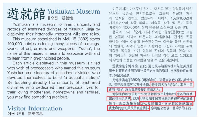 在靖國神社的展陳中,關於「南京大屠殺」,完全不用「屠殺」二字,只用南京「事件」來隱瞞歷史真相。