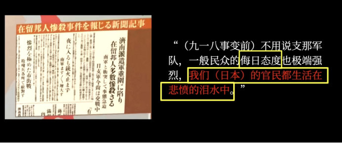 關於九一八事變的「圖錄」中說:「(九一八事變前)不用說支那軍隊,一般民眾的侮日態度也極端強烈,我們(日本)的官民都生活在悲憤的淚水中。」