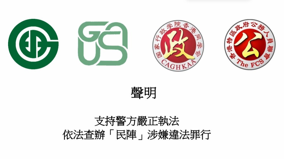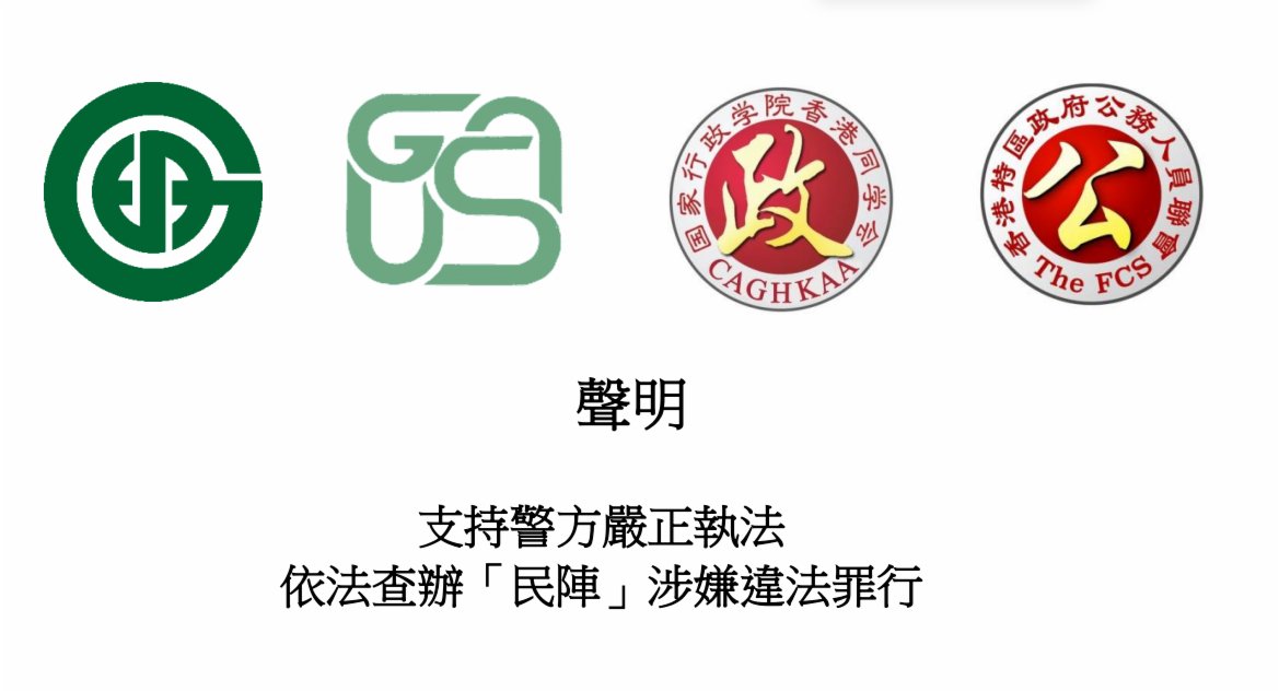 大公文匯網報道,就民間人權陣線(「民陣」)宣布解散,政府人員協會、香港公務員總工會、國家行政學院香港同學會及香港特區政府公務人員聯會發表聯合聲明,支持警方嚴正執法,依法查辦「民陣」涉嫌違法罪行,全力支持特區政府推動各項維護國家安全的工作,並深信在《港區國安法》保駕護航和「愛國者治港」原則下,香港社會將加快重回正軌,必能確保「一國兩制」行穩致遠。