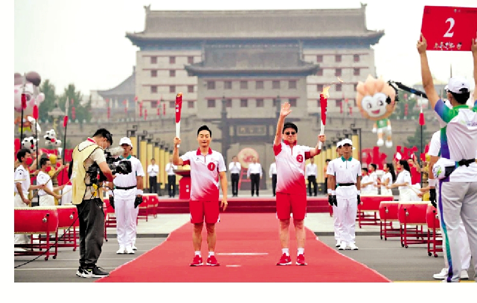 (大公報記者 李陽波、張仕珍)聖火照三秦,榮光耀古城。8月16日(昨天)上午,十四運會(全運會)和殘特奧會火炬傳遞活動,在西安南門永寧門廣場開跑。第一棒火炬手、奧運冠軍秦凱,與來自西安各行各業的100名火炬手,共同完成了全程約5.3公里的火炬傳遞,向全國展示了「全民全運 同心同行」的全運精神。據悉,十四運會和殘特奧會火炬傳遞活動合二為一、一體傳遞,從8月16日至9月12日,火炬將在陝西省13個市區進行28天、14站的傳遞。