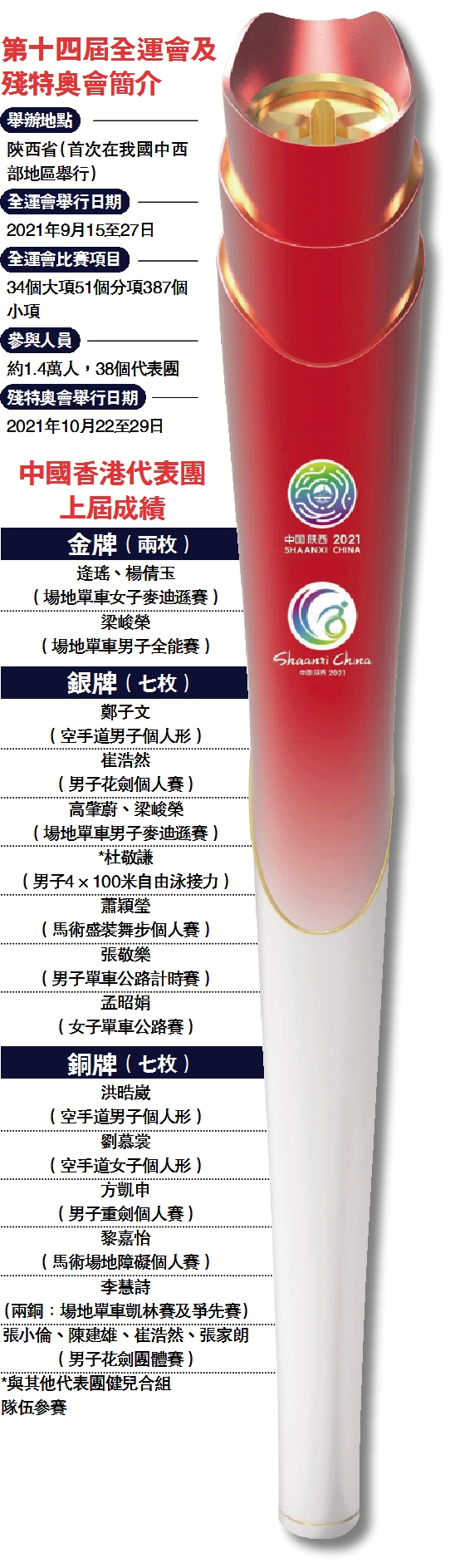 十四運會將於2021年9月15日至27日在陝西省舉行;殘特奧會將於2021年10月22日至29日在陝西省舉行。