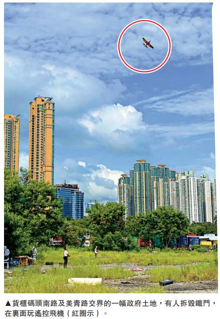 該幅港口後勤用地,插有的「政府土地」告示牌,在日曬雨淋下,告示牌的字跡開始模糊不清,而圍封此1.61公頃用地的鐵絲網有多處被人弄破,有人在裏頭玩模型直升機,更有露宿者在內搭置床鋪,仿如一個劏房單位,空地上隨處可見廢置車胎和發泡膠等垃圾,部分更積水養蚊,環境衞生堪憂。