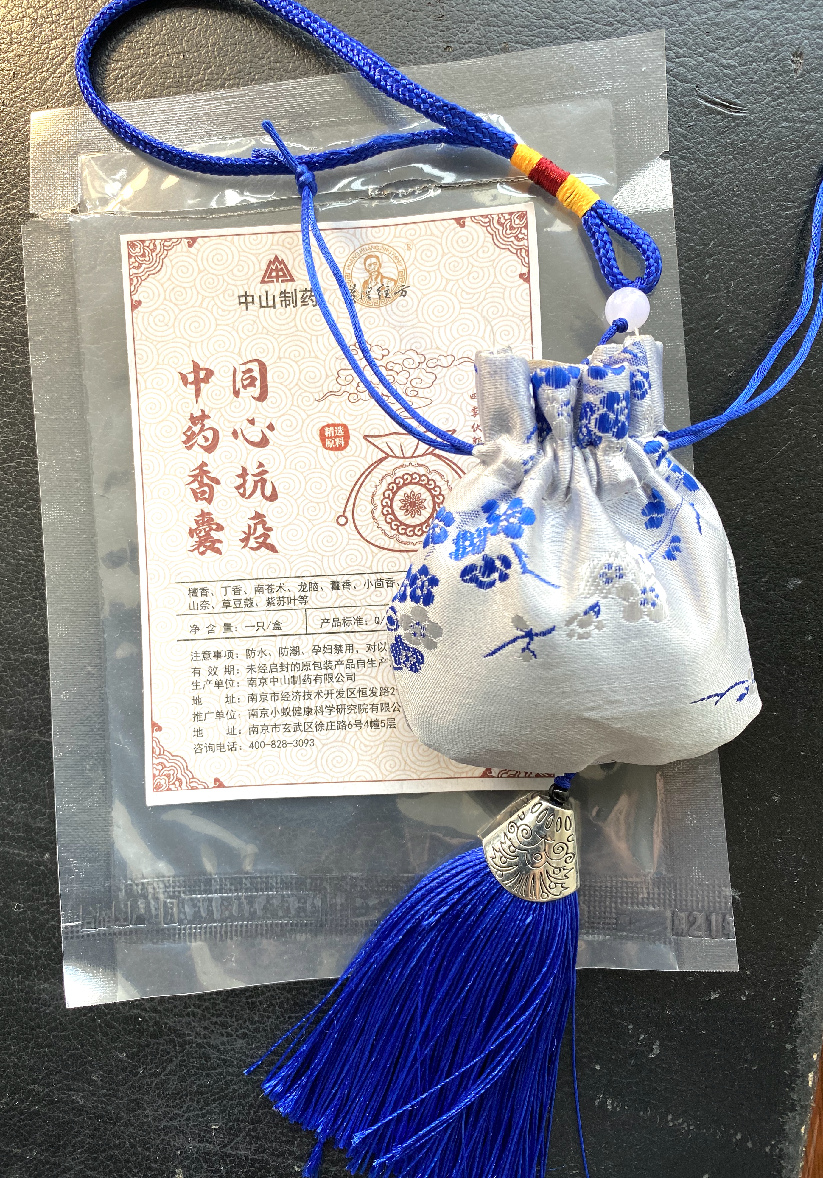 江蘇省農業品牌協會出資購買中藥材,由國家高新技術企業南京中山製藥有限公司加班加點生產製作,在7月底製作了7500個香囊,在贈予南京防疫一線醫務人員的同時,專門寄贈台灣學者。