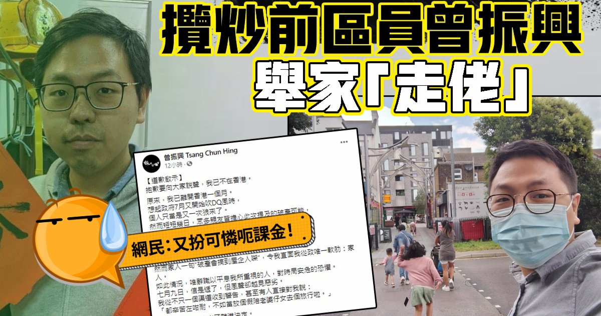 大公文匯全媒體報道,已辭職的前屯門區區議員曾振興,噚日透過社交平台貼出「道歉啟示」,話自己已經離開香港一個月。佢話現時一家情況安好,「雖財政壓力重大,仍未儲夠簽證費用,未有穩定收入」囉。最後送上廉價的祝福後,貼個課金連結出嚟,究竟重點係乜,大家明啦。