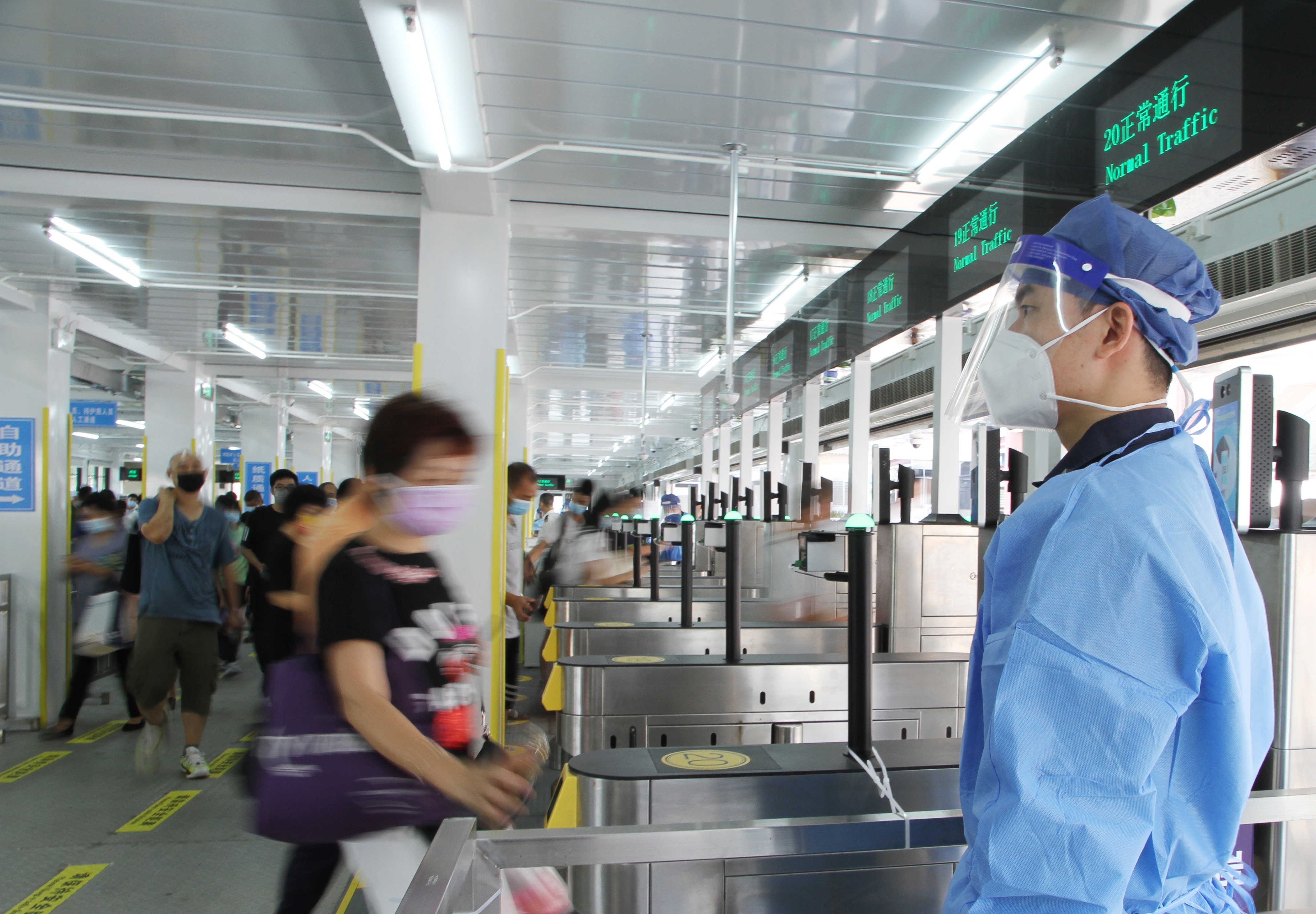 啟用首日,經健康申報區出境的旅客超7.4萬人次,其中通過閘機驗核申報旅客近7.2萬人次,通關順暢。