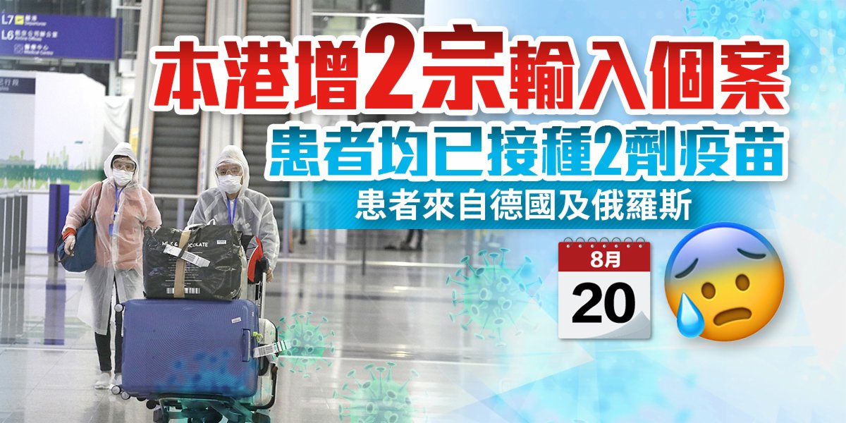 - 本港增2宗輸入個案 患者均已接種2劑疫苗