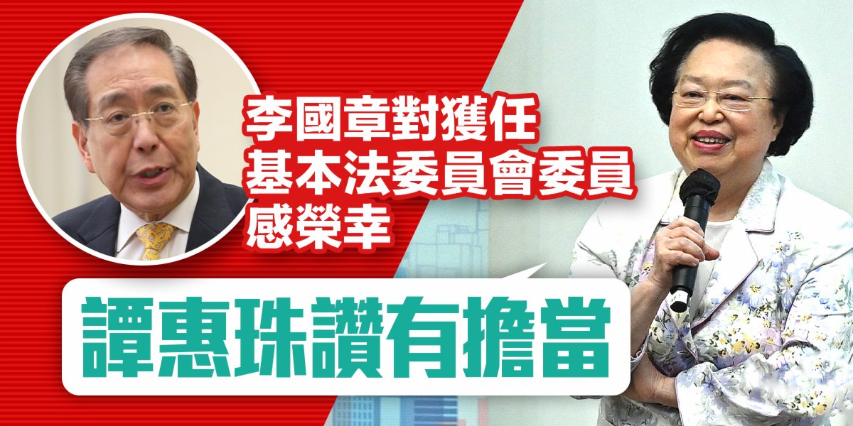 - 李國章對獲任基本法委員會委員感榮幸 譚惠珠讚有擔當