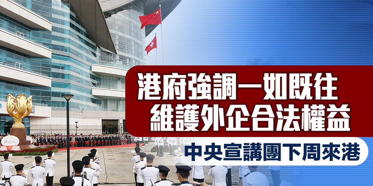 - 港府強調一如既往維護外企合法權益 中央宣講團下周來港