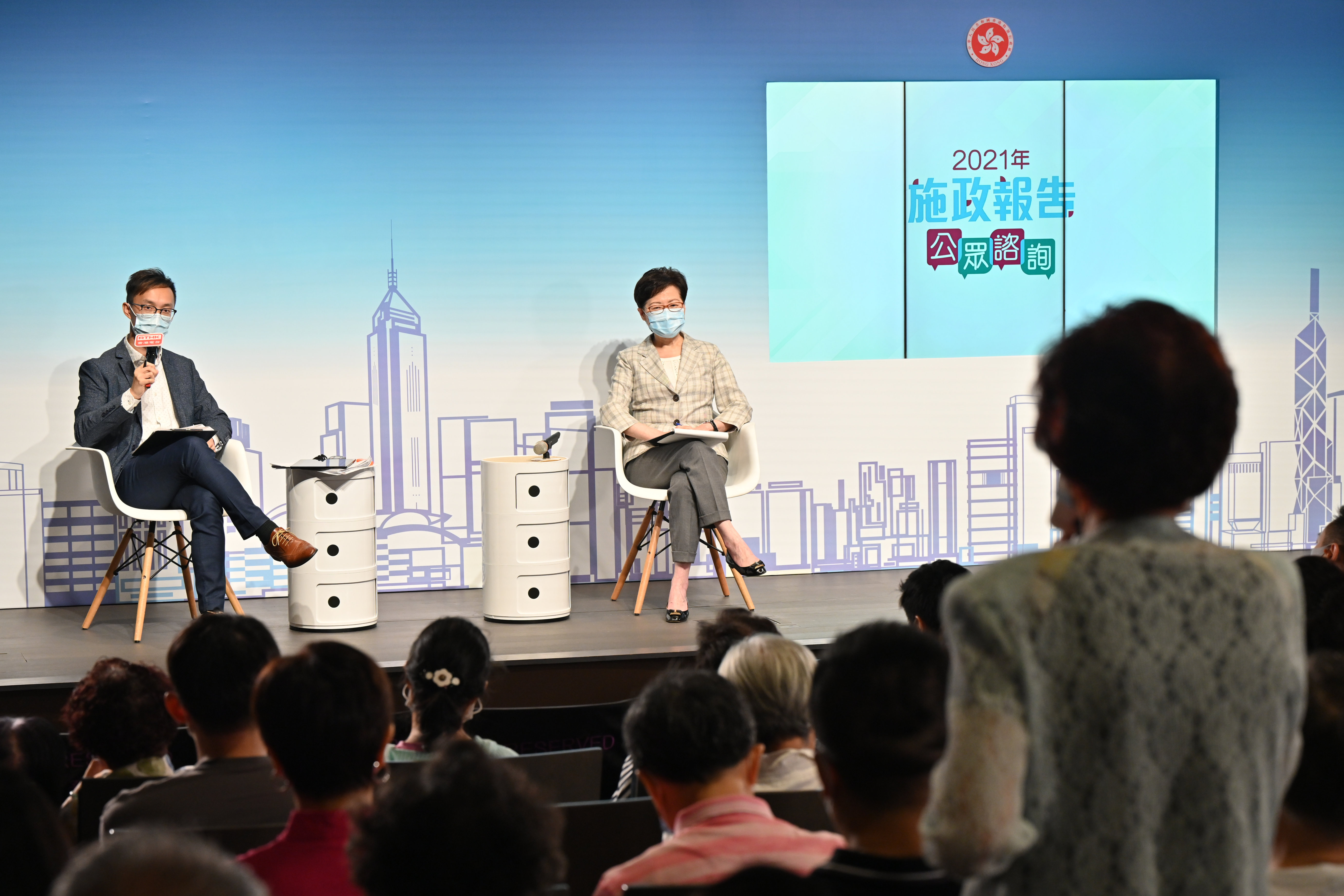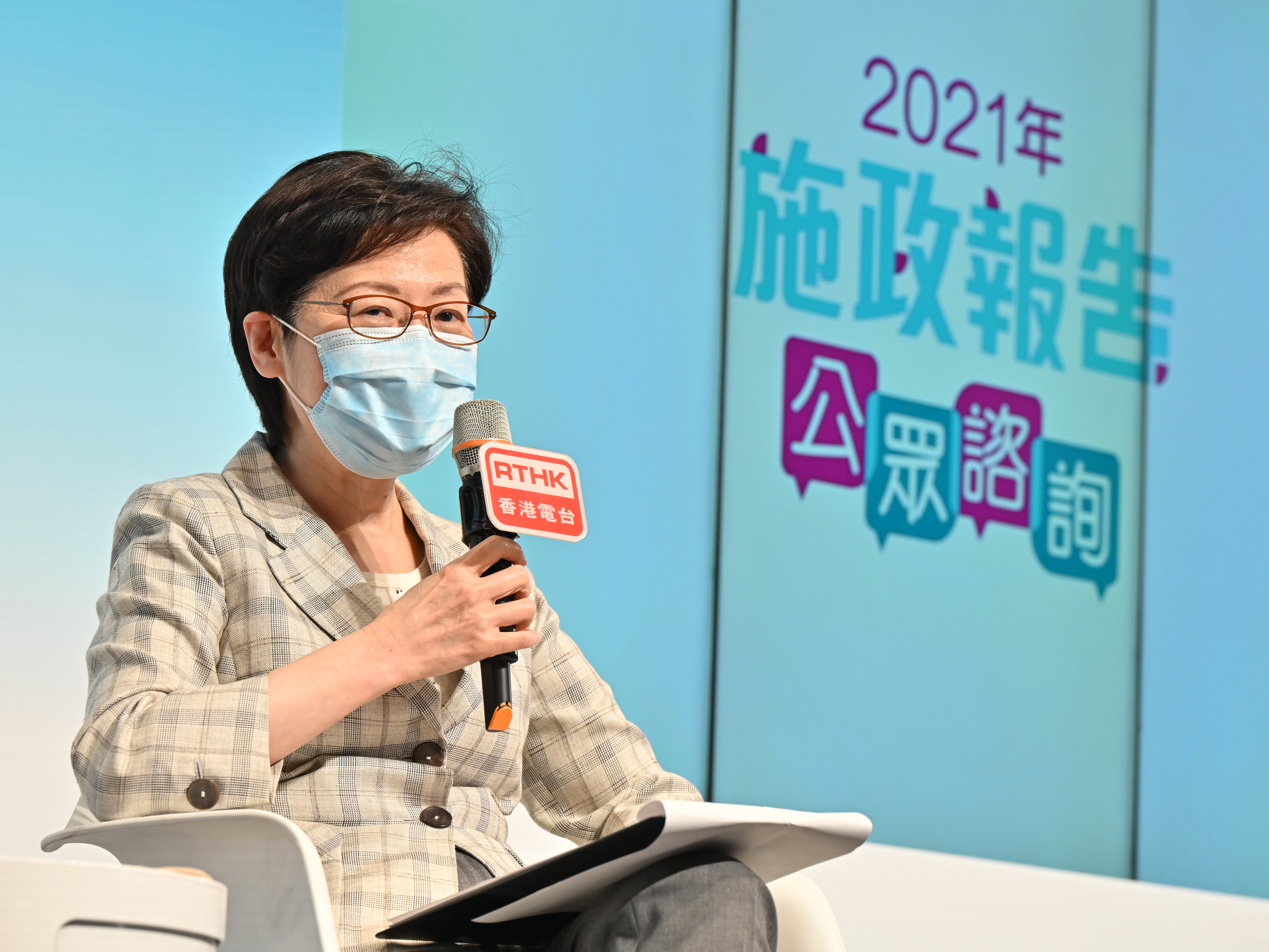 林鄭月娥在7月6日展開2021年施政報告公眾諮詢,至今已主持了25場不同形式的諮詢會,主題涵蓋民生福利、金融、商貿、航空、法律、創科、教育和勞工,以至土地房屋、醫療、體育、文化藝術等範疇,聽取了多個界別的持份者,包括立法會議員、商會、專業團體、非政府團體及市民大眾對新一份施政報告的意見。林鄭月娥未來數周仍會再主持約10場諮詢會,會見更多不同界別和組群的人士。
