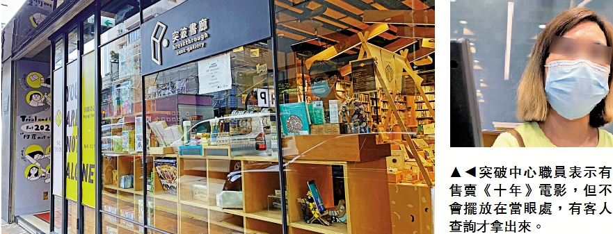 記者發現突破書廊網站仍可訂購「港獨」影碟,遂到佐敦吳松街突破書廊了解,見店內未有公然出售涉黑暴電影,惟走到櫃枱詢問時,職員煞有介事從暗處取出一隻電影「十年」的光碟,對於政府即將立法規管制止危害國家安全的電影,職員稱未有所聞;而在荃灣黃店Chickeeduck,記者發現店內公然出售數套涉黑暴電影《分域大道》及《亂世備忘》等。