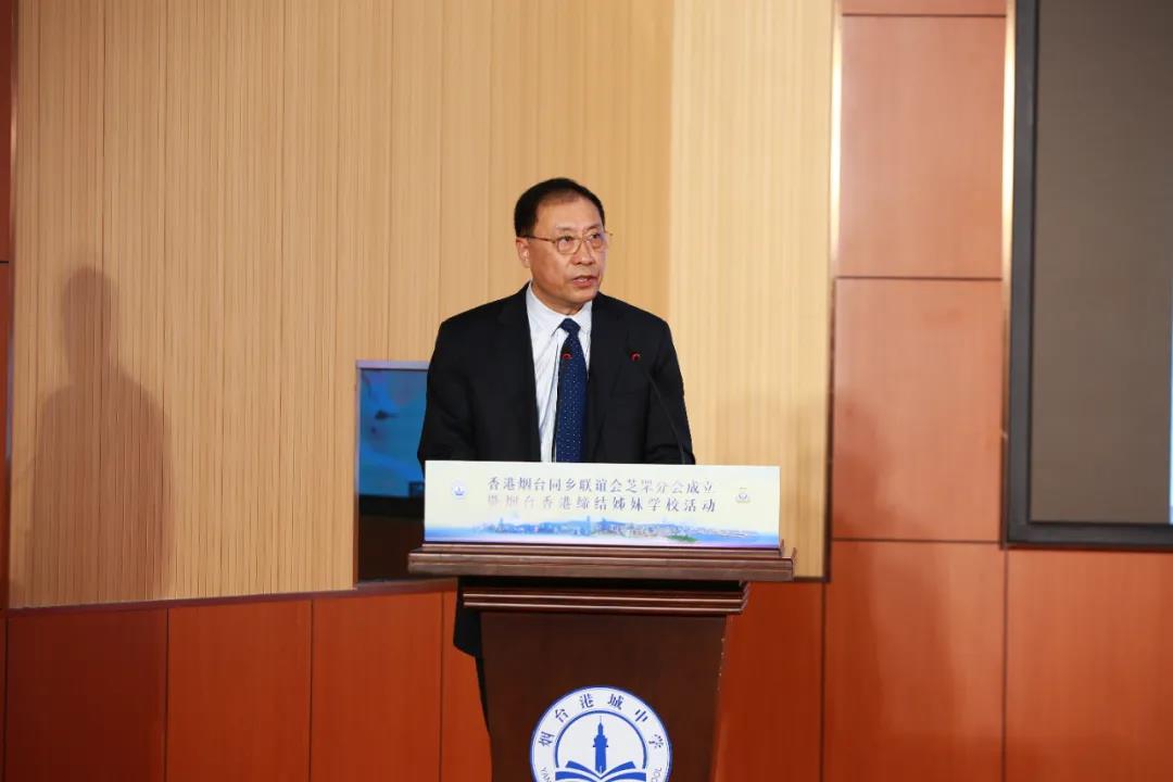 煙台市委統一戰線工作部常務副部長王天立在致辭中指出,煙台港城中學和香港浸會大學附屬學校王錦輝中小學締結為姊妹學校,開創了兩地基層學校交流交往的先河;香港煙台同鄉聯誼會芝罘分會的成立為芝罘區和香港進一步加強交流合作搭建了平台,標誌着在港鄉親有了話鄉音、敘鄉情、謀發展的新平台,為推進兩地在更廣領域、更深層次交流合作奠定了組織基礎。