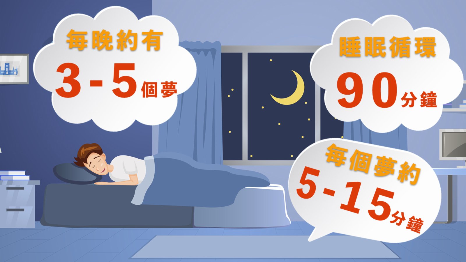 以上的一個睡眠循環歷時約90分鐘,然後會再依序轉回淺睡期、深睡期、淺睡期、作夢期。以一般人夜間睡眠平均7至8小時而言,一晚總共會經歷約4次的週期循環,故此正常人一般每天晚上必定會做3至5個夢,一次達5至15分鐘。也就是說,做夢是一種普遍的生理現象,不管你能否憶起夢境,有沒有做夢的感覺,正常人晚上都會做夢,這是腦部活動正常的表現,因此睡眠質素欠佳與做夢不無直接關係。