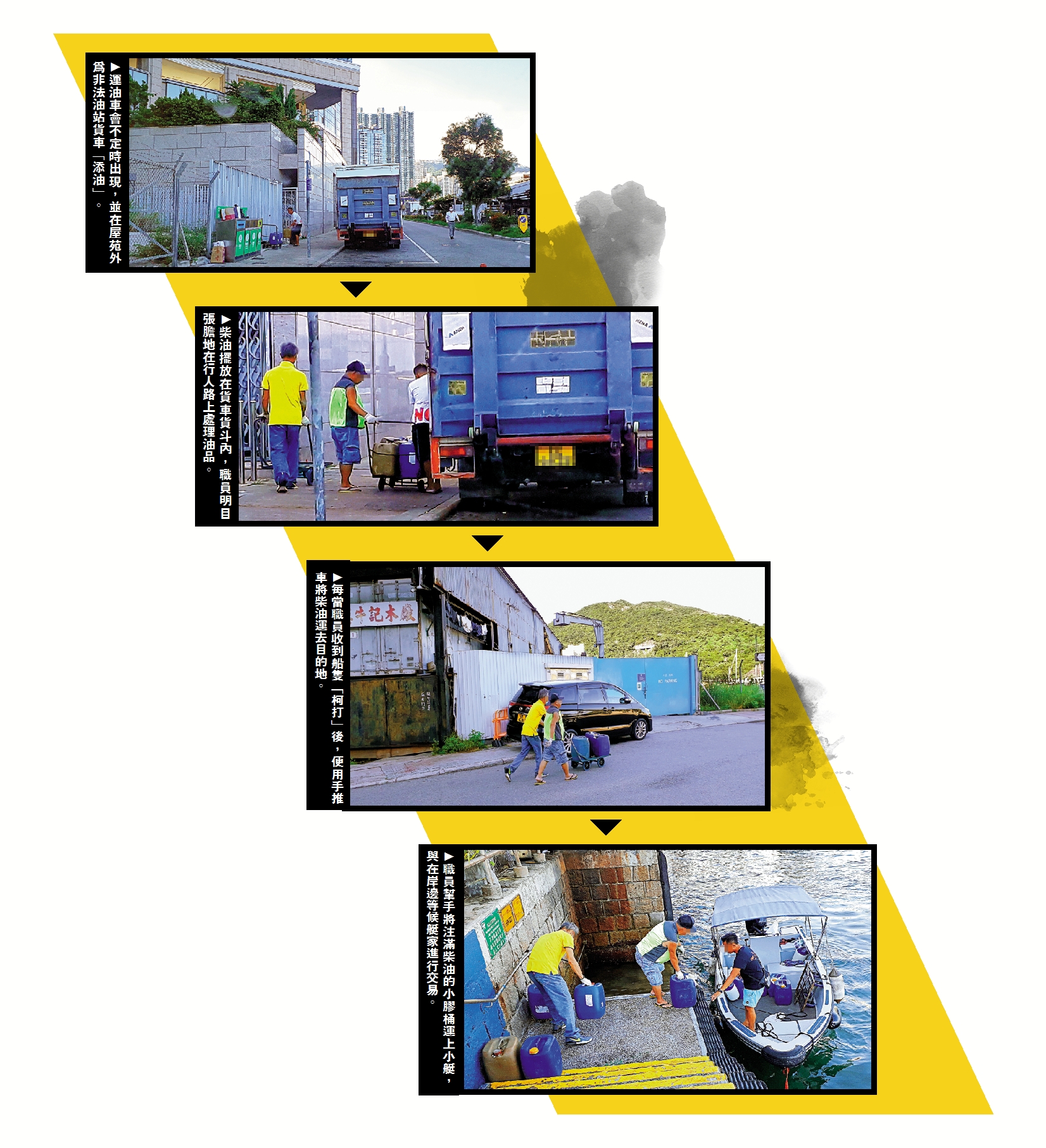 「佢哋每公升油六蚊左右,比出面普遍(非法油站)五蚊左右貴少少,但比正價每公升大約13蚊平好多,仲勝在夠方便。」一名船家向記者稱,該非法油站只做熟客生意,必須事先「落柯打」,再於指定時間到現場入油或取油,「你walk in入油,係唔會有人理你。」
