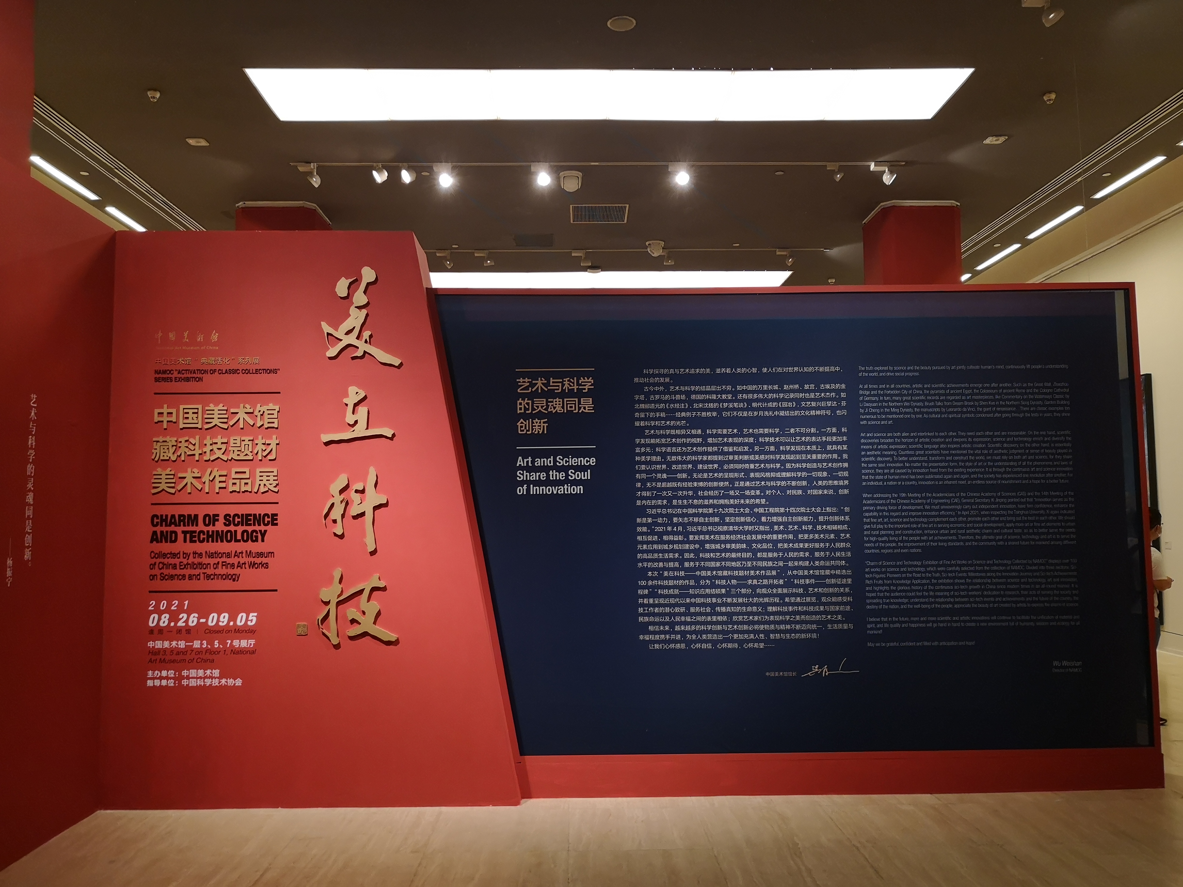 全國政協常委、中國美術館館長吳為山表示,希望通過這次展覽,觀眾能感受科技工作者們潛心致研、服務社會、傳播真知的生命意義;理解科技事件和科技成果與國家前途、民族命運以及人民幸福之間表裏相依;欣賞藝術家們為表現科學之美而創造的藝術之美。