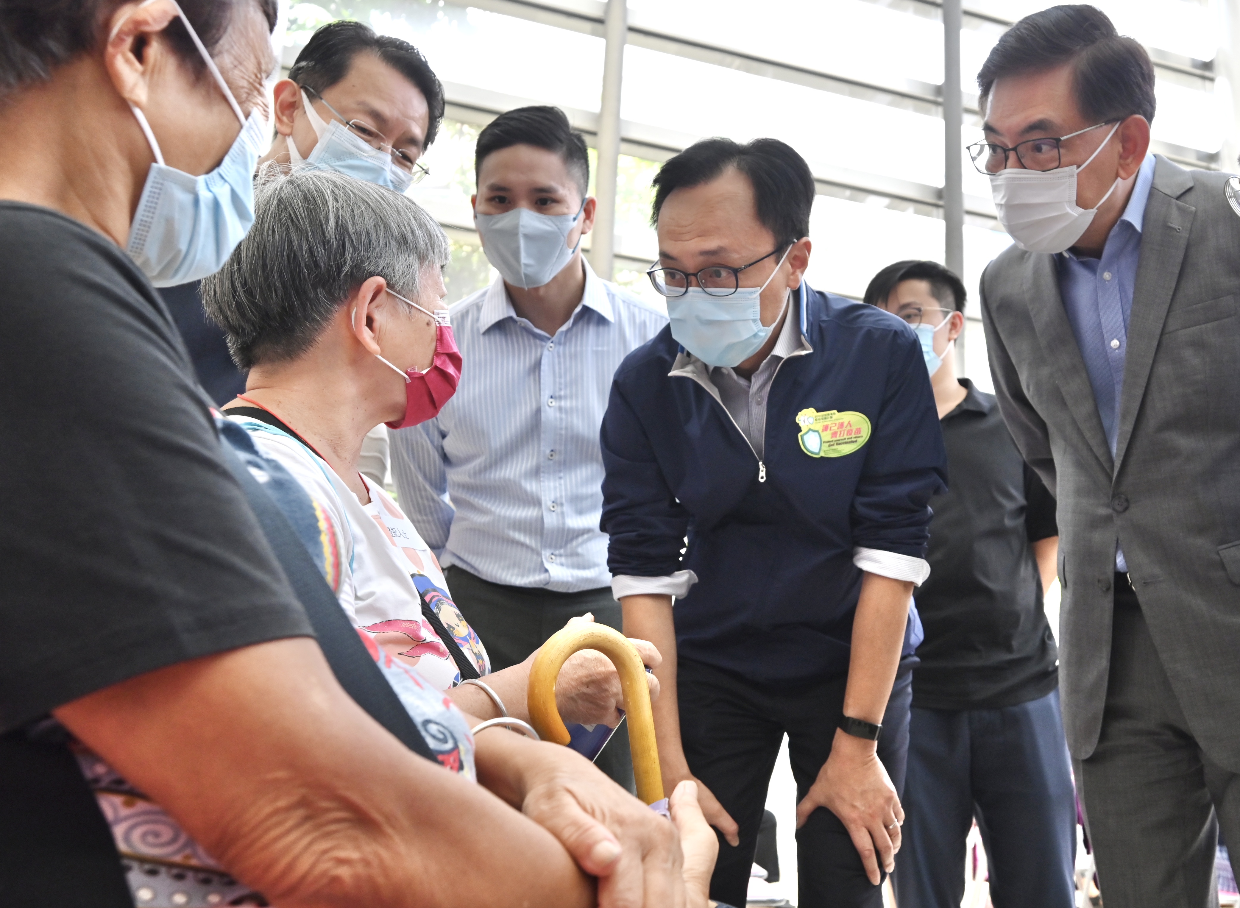 公務員事務局局長聶德權到場視察市民接種疫苗的情況。聶德權表示,領展與政府攜手在商場設立臨時接種疫苗櫃位,提升疫苗接種率,希望可以方便一些市民「想打針、即打針」,即場接種疫苗,亦可以方便一些較年長和居住在附近的街坊。聶德權說,疫苗接種計劃推行已超過半年,外展服務最初多為企業提供疫苗接種服務,現在是時候轉戰地區層面,在地區盡量以不同方法網羅更多人接種疫苗。