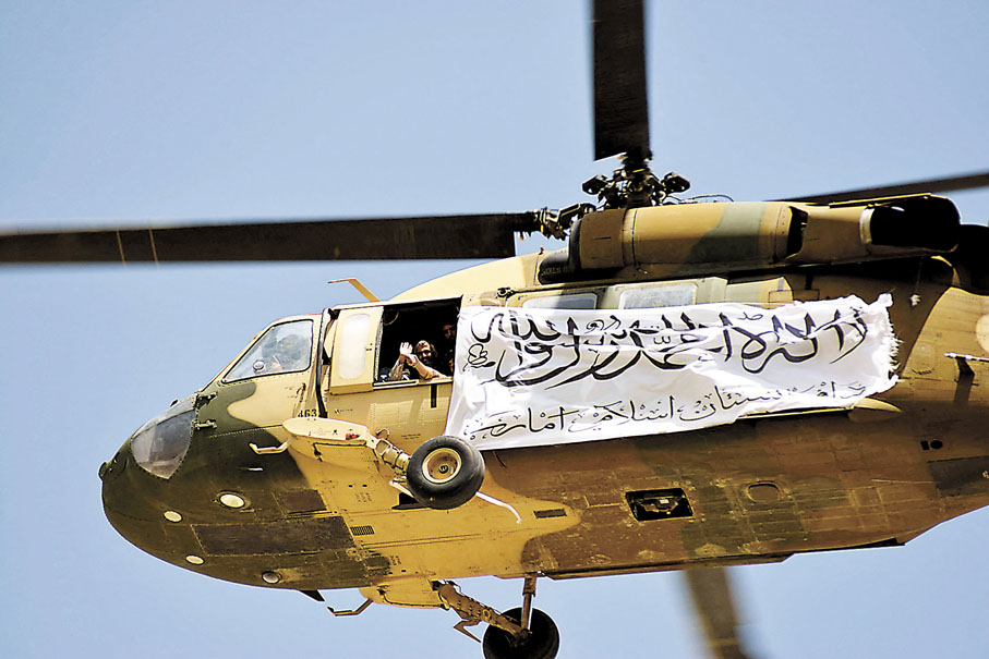 美軍撤離後遺下大量軍備,落入塔利班手中,塔利班前日在發源地坎大哈舉行勝利巡遊,展示獲得的美軍軍備,多輛軍車和裝甲車沿着公路列隊行駛,車上懸掛着黑白色的塔利班旗幟,塔利班成員大多手持美國M16步槍等輕型武器。近日最少一架美軍黑鷹直升機曾在坎大哈上空飛行。由於塔利班內部相信沒有直升機機師,估計是由前阿富汗軍官駕駛。