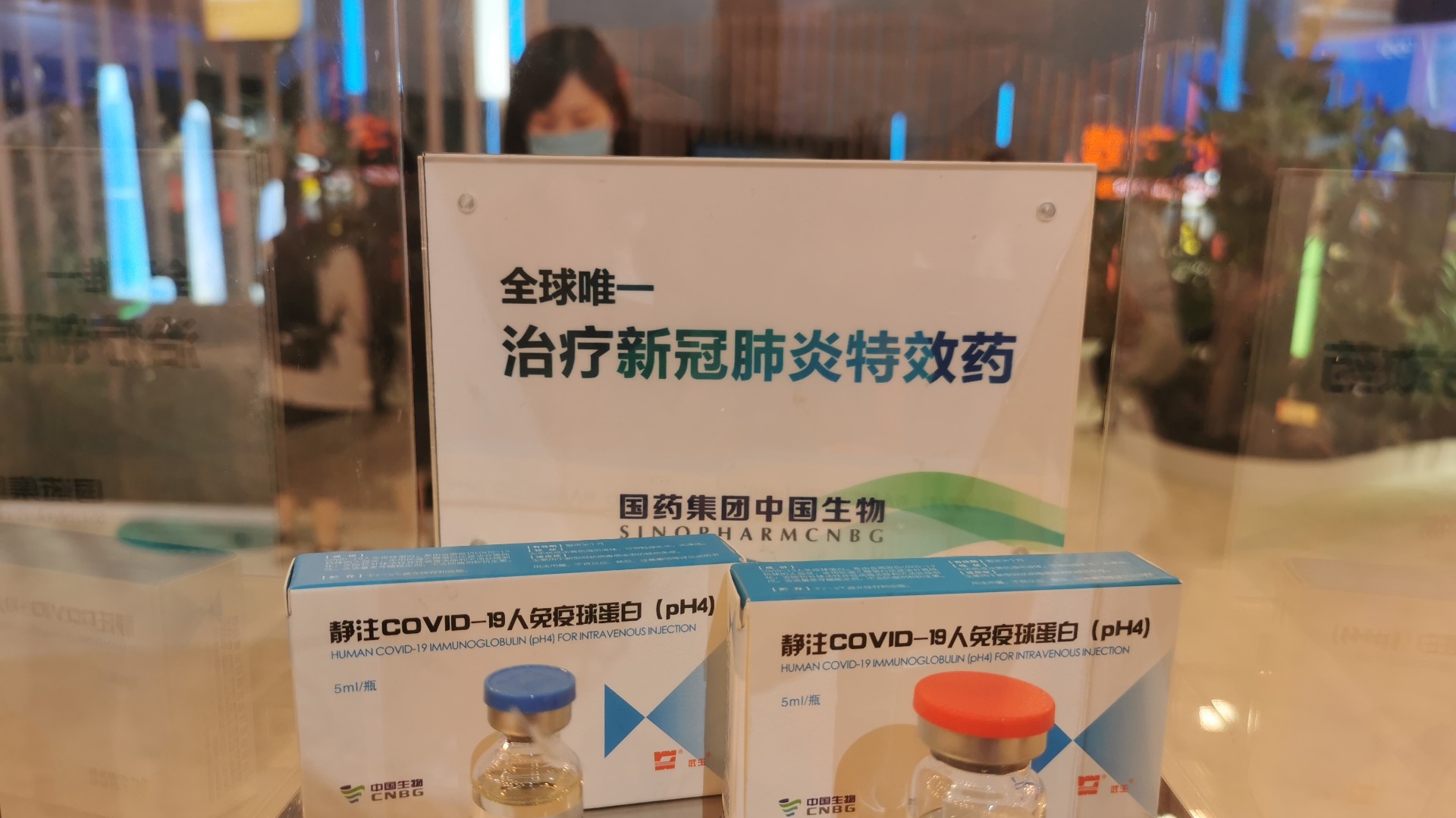 (大公文匯網記者 張帥)微信公號「國藥集團」9月3日消息,8日30日,國藥集團中國生物研製的靜註COVID-19人免疫球蛋白(pH4)獲得國家藥品監督管理局頒發的《藥物臨床試驗批件》,批准開展臨床試驗。靜註COVID-19人免疫球蛋白(pH4)是目前全球唯一治療新冠肺炎的特效藥。在今年服貿會,這款剛剛獲批開展臨床試驗的新冠肺炎特效藥,亮相國家會議中心展區。
