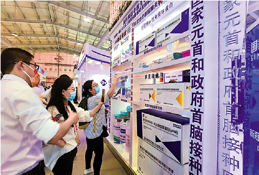 (大公報記者 朱燁、馬曉芳、任芳頡 北京報道)9月3日,中國國際服務貿易交易會(以下簡稱服貿會)在北京舉行,第二次參加服貿會的國藥集團中國生物攜多款重磅產品亮相,國藥集團中國生物首席科學家、副總裁張雲濤對大公報表示,服貿會期間,國藥共帶來了9款產品,「今次帶來的4款疫苗包括之前已經上市的2款滅活疫苗,還有一個重組蛋白疫苗、一個mRNA疫苗。」張雲濤表示,國藥集團在研發針對變異毒株的二代疫苗時,都是有針對性的。比如,北京所針對的是Delta毒株,武漢所針對的是Beta毒株,重組蛋白疫苗對大部分的變異毒株都能夠有效中和,國藥集團中國生物擁有自主知識產權的mRNA變異株新冠疫苗也在研發中。