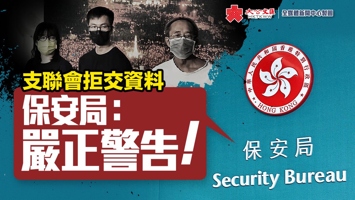 大公文匯全媒體報道,警方國安處早前根據香港國安法第43條去信支聯會常委,要求他們最遲於9月7日向警務處處長提交成員名單、收支情況等多項資料。惟支聯會副主席鄒幸彤今日(5日)卻在記者會上揚言,不會向警方國安處提交任何資料。保安局隨後發聲明指,注意到有團體公然表示,將拒絕配合警方依法根據香港國安法下的實施細則附表5提交資料的要求,對此作出嚴正警告。