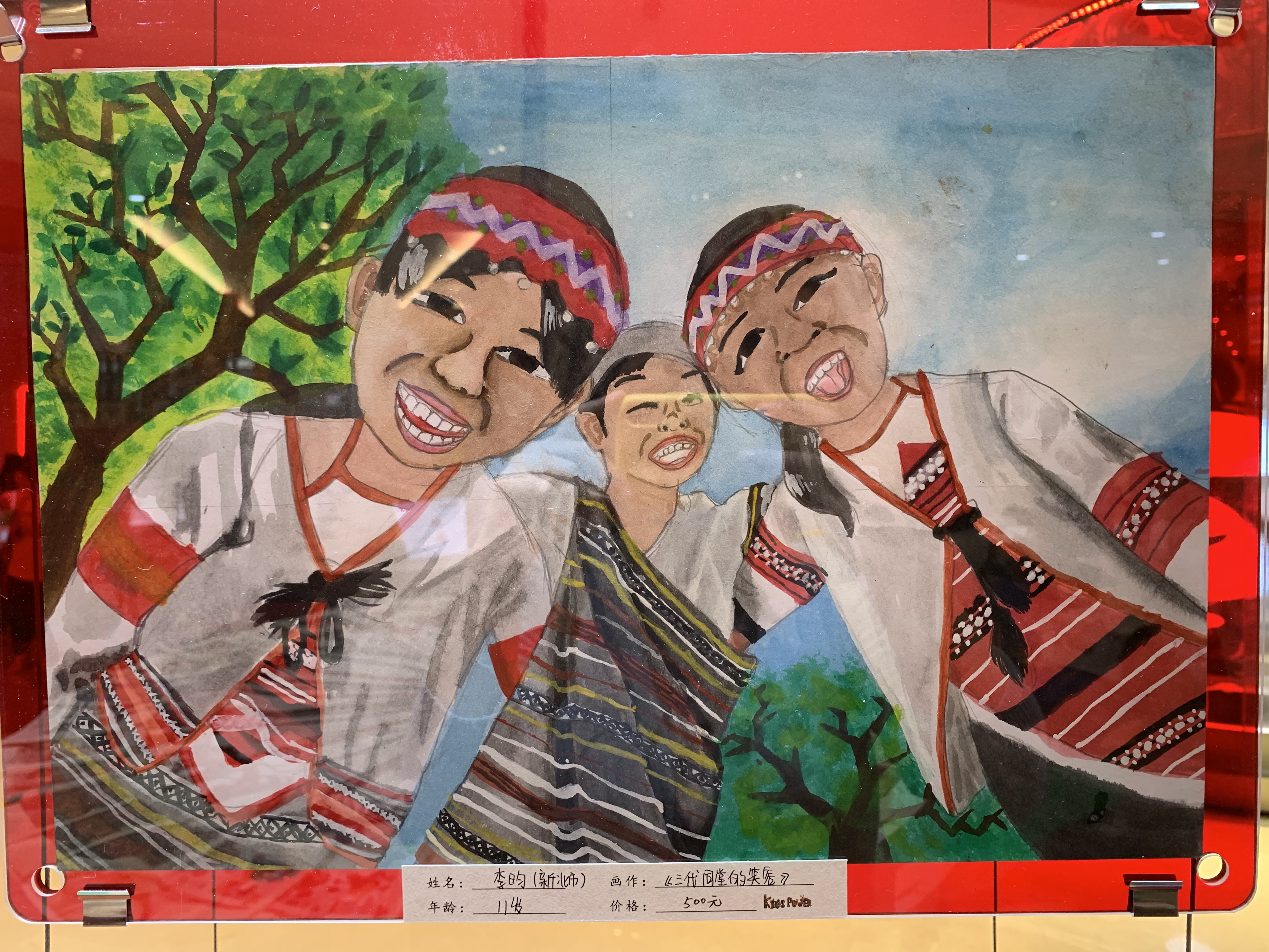 在展出現場,極具台灣民族特色的多件作品引起觀眾關注,如台北兒童創作的畫作《排灣族的婚禮》以豐富的色彩、描繪出婚禮的喜慶場面。而由瀋陽青少年以台灣少數民族為內容創作的裝置作品展《日月潭的邵族人》則通過邵族最具代表性的「杵音之舞」展示了大陸兒童眼中的台灣風情。此外,展覽還向台灣青少年展現了錫伯族、朝鮮族、蒙古族、回族等祖國多民族的風土人情。