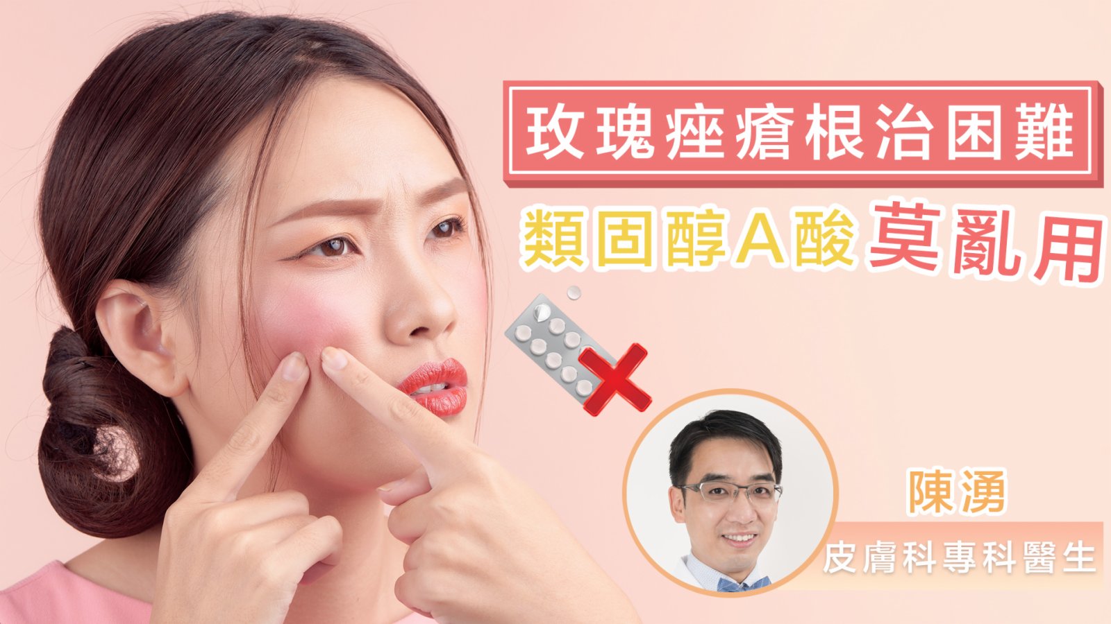在治療方面,醫生不建議使用外用類固醇,因為類固醇有機會使皮膚血管膨漲、表皮變薄,故此醫生傾向使用消炎藥膏,以降低發炎反應。如皮膚出現痤瘡,醫生會選用刺激性較低的外用藥膏;若病情嚴重,醫生會處方口服藥,包括口服抗生素或口服維他命A酸。口服抗生素的壞處是不可長期服食,一般處方一至三個月的份量,如停藥後有機會復發,因此抗生素只能在服藥期間暫時遏止病況。而口服維他命A酸副作用相對較多,有機會使患者皮膚較乾,出現頭痛、肌肉痛、甩頭髮等情況,亦有機會影響肝臟,甚至令患者出現情緒問題。