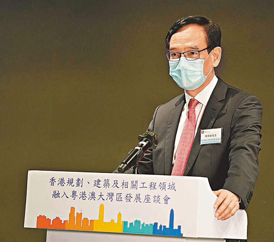 主辦機構代表、發展局局長黃偉綸表示,發展局一直以來積極推動香港業界融入國家發展大局,包括和廣東省住房城鄉建設廳合作推出《大灣區備案管理辦法》,今年1月1日開始允許合資格的香港工程、建築、測量和園境四種專業人士,透過簡單的備案,取得內地相應的資格,從而可以在大灣區內地九市開業及執業,到目前為止有超過40家企業和153位專業人士完成備案。