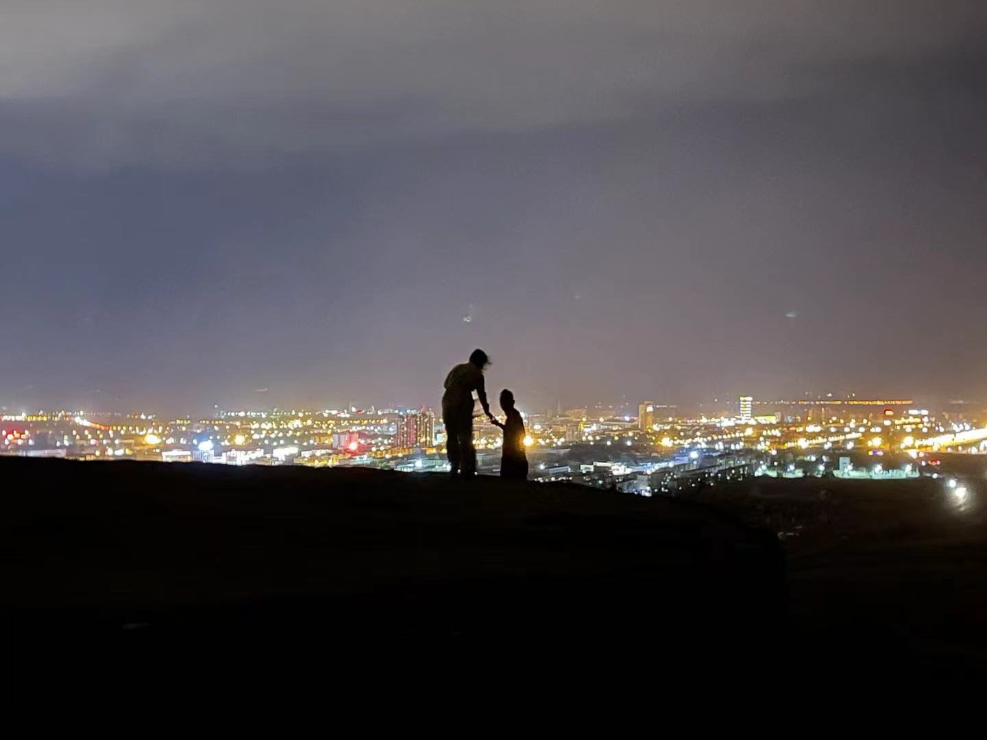 筆者在黃昏時分駕車進獨山子區,負責查驗我的行程碼和核酸證明的女公安,一聽到我要跑獨庫公路,特意帶我到她們檢查站對出空地的大牌子前,告訴我該怎樣走,還囑咐我在山裏要小心過拐彎和禦寒。我告訴她我會在獨山子住上一晚,她便提醒我獨山子有個叫泥火山的景區,很值得晚上去。筆者當晚爬上山頂後回頭一看,整個獨山子區夜景,盡入眼簾,還拍到一對少數民族男女的背影。