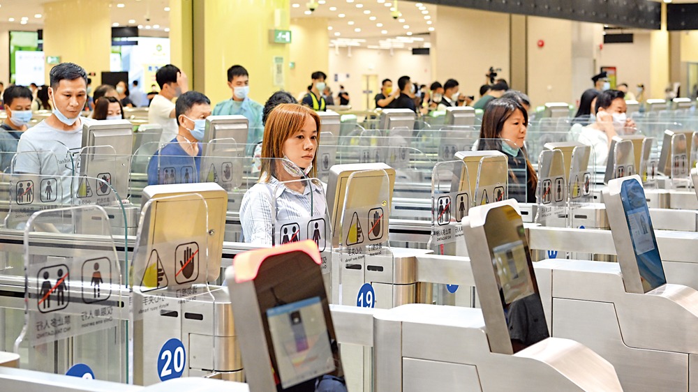 出入境人員在青茂口岸無需經過兩道關口、接受兩次檢查,只需「在一個大廳、排一次隊、集中接受一次檢查」即可完成內地和澳門雙方出入境手續。「青茂口岸以合作快捷查驗通道為主,可以說是目前中國電子化、智能化程度最高的口岸。」青茂邊檢站相關負責人說。記者了解到,在建的新皇崗口岸主體工程擬2023年完工,目前深圳正在與港方積極協商在新皇崗口岸實施「合作查驗,一次放行」通關模式,簡化通關手續,為香港與內地的居民來往出行提供便利。