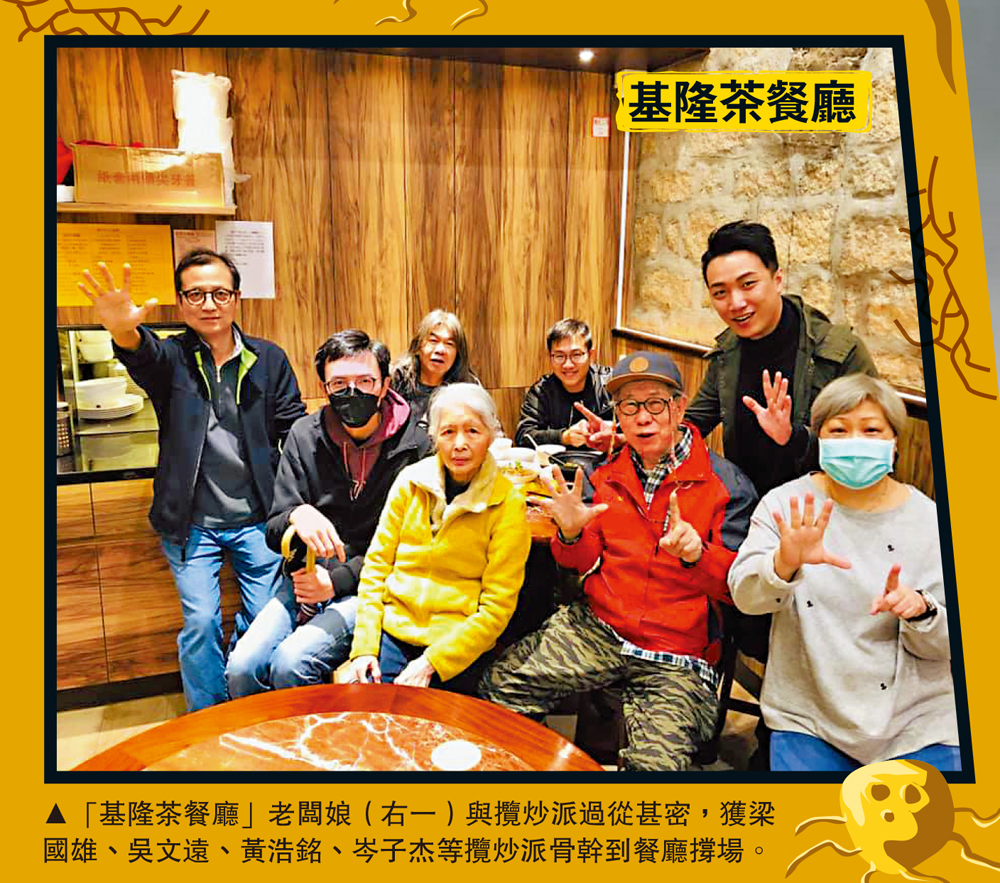 「基隆茶餐廳」的老闆娘姓曹,早年經營製衣生意。2006年起開設茶餐廳,生意不過不失。2014年違法「佔中」期間,曹婦疑長期受「獨媒」及反中亂港者潛移默化,成為「佔中」支持者。前年黑暴爆發後,該店高調撐暴,經常派飯及資助參與黑暴的青少年,又積極為612黑暴基金籌款,去年4月被《蘋果日報》捧為所謂抗警黃店。去年7月亂港派發動的非法「35+初選」,位於界限街及北河街的基隆茶餐廳為初選票站,足見餐廳老闆與亂港組織勾連之深。