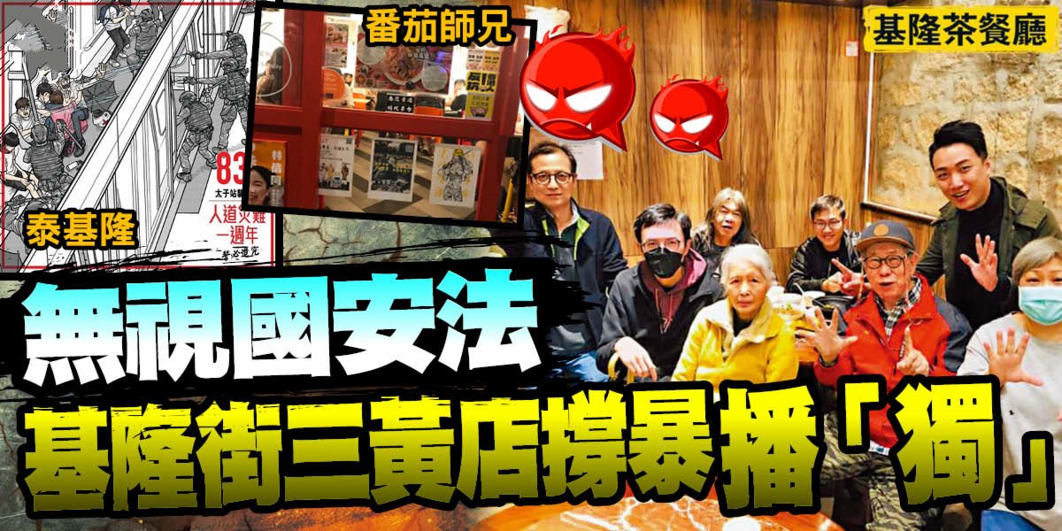 大公文匯全媒體報道,前年黑暴期間,深水埗基隆街一帶出現多間食人血饅頭、藉煽暴撐「獨」招生意的「黃店」。當中三間最高調、最唯恐香港不亂的,被市民嘲為:前有「爛基隆」,後有「泰基隆」,中間還有個「爛番茄」。國安法實施一年多以來,這些黃店仍然長期在社交媒體展示「港獨」標語和文宣,荼毒市民,更公然為612黑暴基金籌款,無視法紀。而在防疫問題上,這些黃店也是政治先行,放任食客不掃碼、不登記,自出自入。有街坊及立法會議員怒斥黃店可恥,要求國安處介入調查,果斷執法。