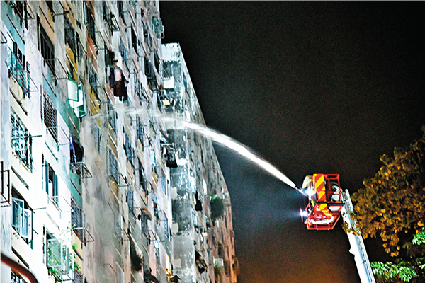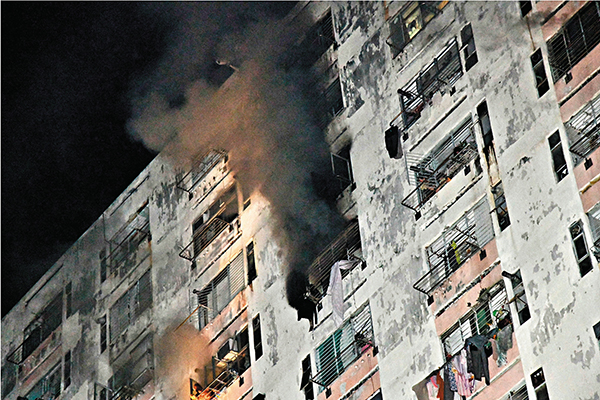 昨凌晨2時許,阿玲單位冒出大量濃煙,未幾便陷火海。當時,大部分居民也已入睡,近千居民需要穿着睡衣緊急走火警,狼狽不堪。火警單位同層多戶居民被濃煙困在屋內,有人靠近窗邊不斷揮動毛巾向外求救,同層一戶姓李戶主的大兒子李擴,情急下攀窗爬出晾衫架逃生,失足墮樓重傷昏迷,由救護車送院搶救不治。