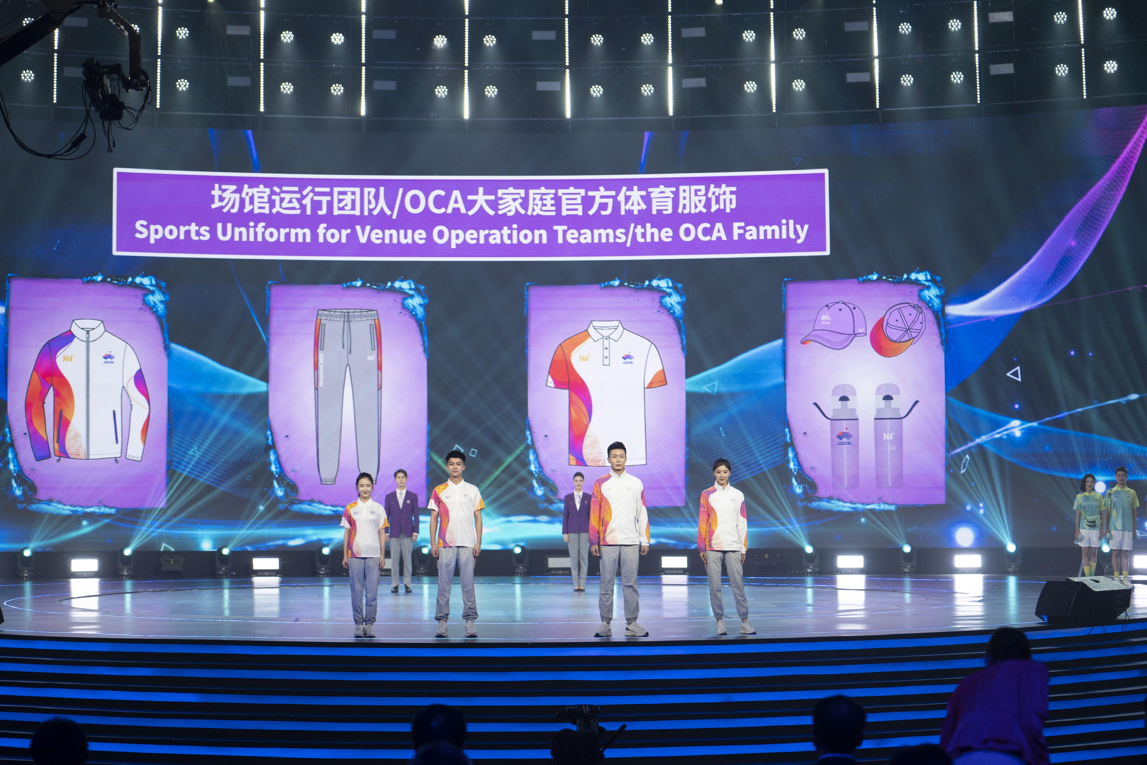 官方體育服飾包括有火炬手服飾、護跑手服飾、賽會志願者服飾、技術官員服飾、安保人員服飾、技術官員正裝服飾、場館運行團隊/OCA(亞奧理事會)大家庭服飾、OCA(亞奧理事會)大家庭正裝服飾。