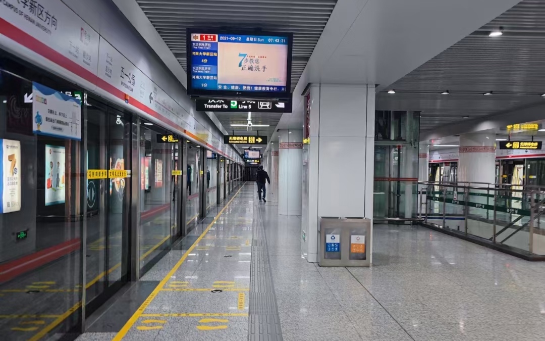 恢復運營首日,鄭州地鐵1號線、2號線一期、城郊線執行周末運營時刻表,1號線上線列車25列,行車間隔6分鐘;2號線一期與城郊線貫通運營,上線列車25列,2號線一期行車間隔6分50秒,城郊線行車間隔13分40秒。