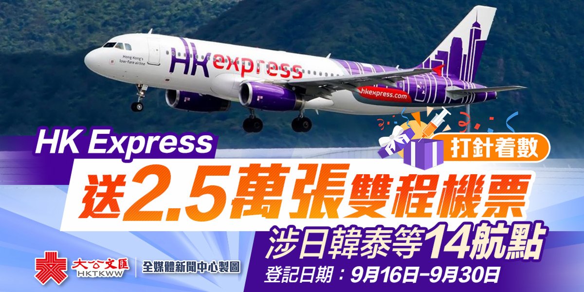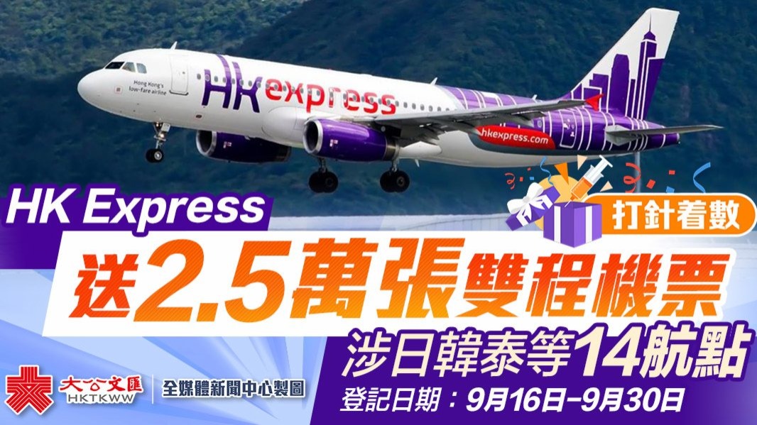 大公文匯全媒體報道,香港快運(HK Express)今日(13日)表示,由機場管理局發起的「新冠疫苗接種免費機票大抽獎」將於周四(16日)起接受登記,共送出2.5萬張香港往來日本、韓國和泰國等14個HK Express熱門航點的雙程機票。(點此可登記抽獎)