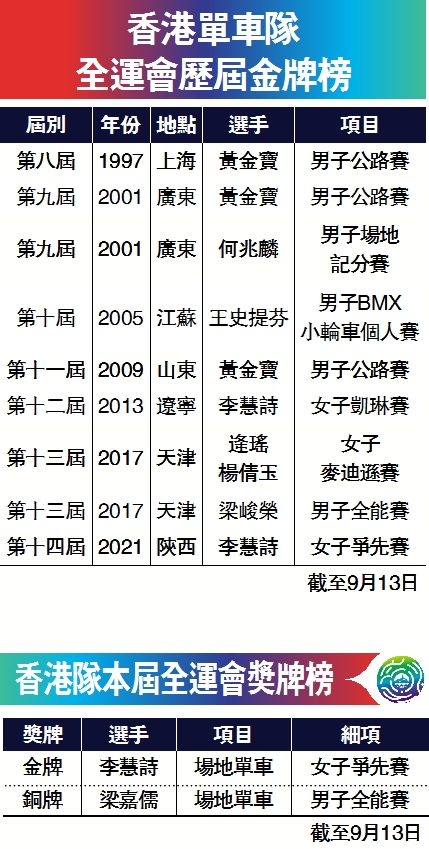 連同這枚金牌,李慧詩延續了香港單車隊「屆屆有金牌」的優良傳統,單車隊在連同本屆在內的七屆賽事中,已共收穫九枚金牌。若今天港隊再有金牌進賬,他們累計的金牌數會達到雙位數。