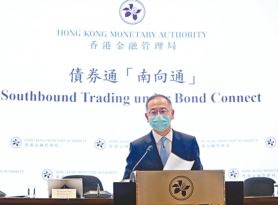 金管局總裁余偉文昨表示,隨着內地經濟穩步發展和金融市場不斷開放,內地金融機構對配置境外資產的需求日趨殷切,債券南向通旨在為內地機構投資者提供便捷、高效及安全渠道,以透過香港債券市場靈活配置境外債券資產,料將為國際金融機構提供誘因在香港投放更多資源,在債券承銷、交易、託管等各個環節服務南向通投資者,並有助吸引更多內地和海外機構來港發債,推動香港債券市場發展,進一步鞏固香港國際金融中心地位。