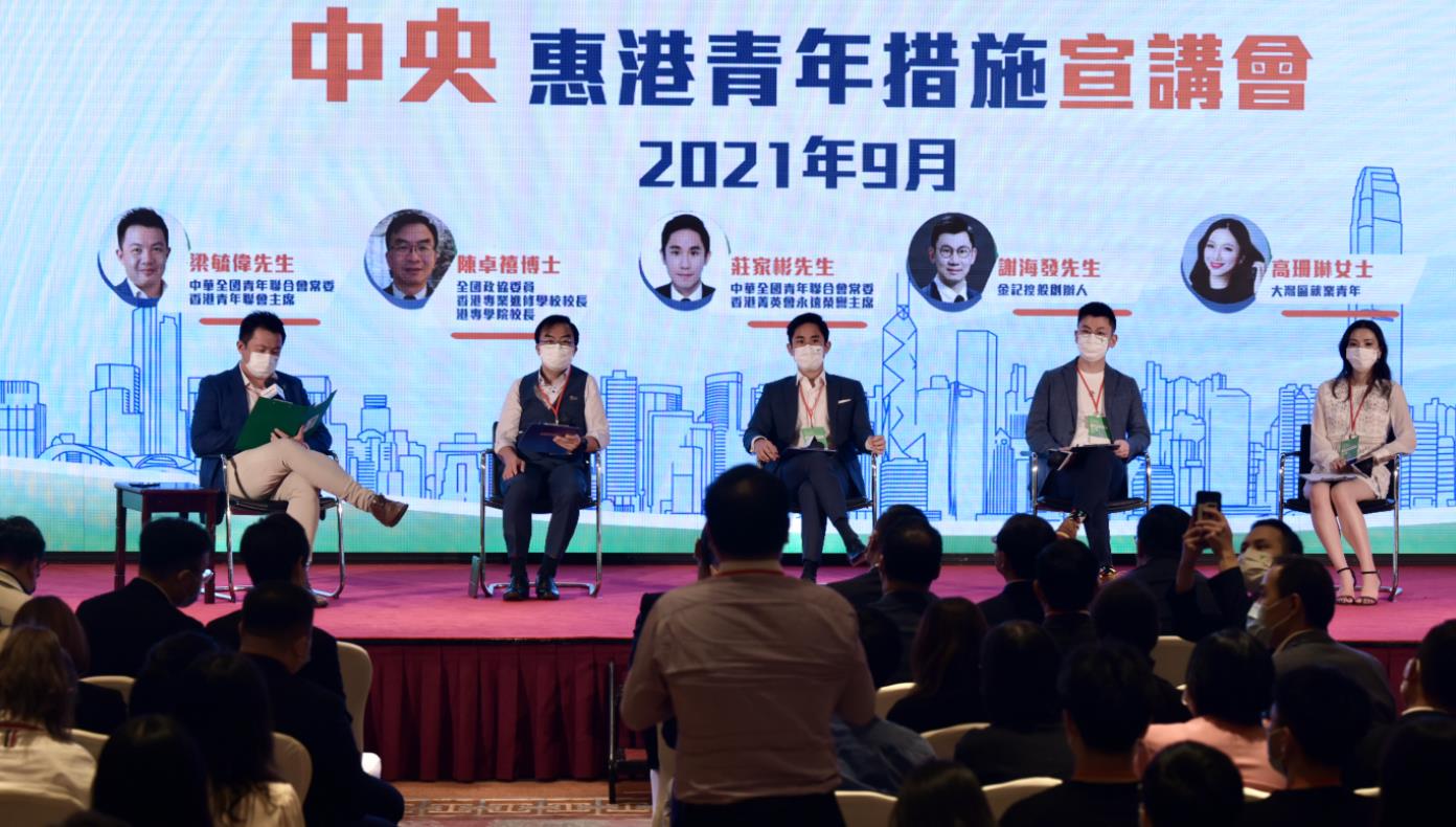 中華全國青年聯合會與香港特區民政事務局、港澳辦交流司、中聯辦青年工作部及香港青聯昨日(16日)一同舉行「中央惠港青年措施宣講會」,全國青聯在會上公布推出5年推1萬個實習職位給港青等八項措施,這是自今年6月底以來中央三度推出惠及港青的措施,相關政策理性務實,意義深遠,有助港青積極融入國家發展大局。