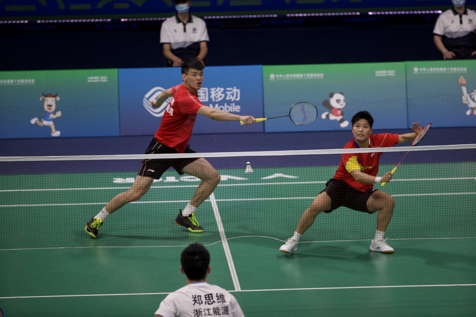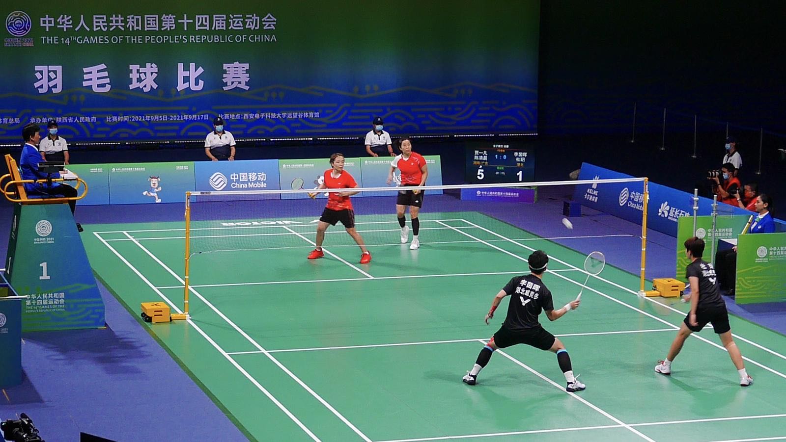 而由聯合隊奧運亞軍組合賈一凡/陳清晨出戰的女子雙打項目同樣精彩,二人對戰一路高歌猛進的湖北隊組合李茵暉/杜玥。首局一開始,賈一凡/陳清晨便展現出強大實力,一路領先,以21-11大比分取得第一局勝利。第二局中,賈一凡/陳清晨依然稳紮稳打,李茵暉/杜玥一路努力追分,雙方打得驚心動魄,最終賈一凡/陳清晨以21-19拿到第二局勝利。羽毛球女子雙打決賽經過兩局激烈角逐,奧運亞軍組合賈一凡/陳清晨以2-0戰勝對手奪得冠軍,彌補了二人在東京奧運會錯失金牌的遺憾。