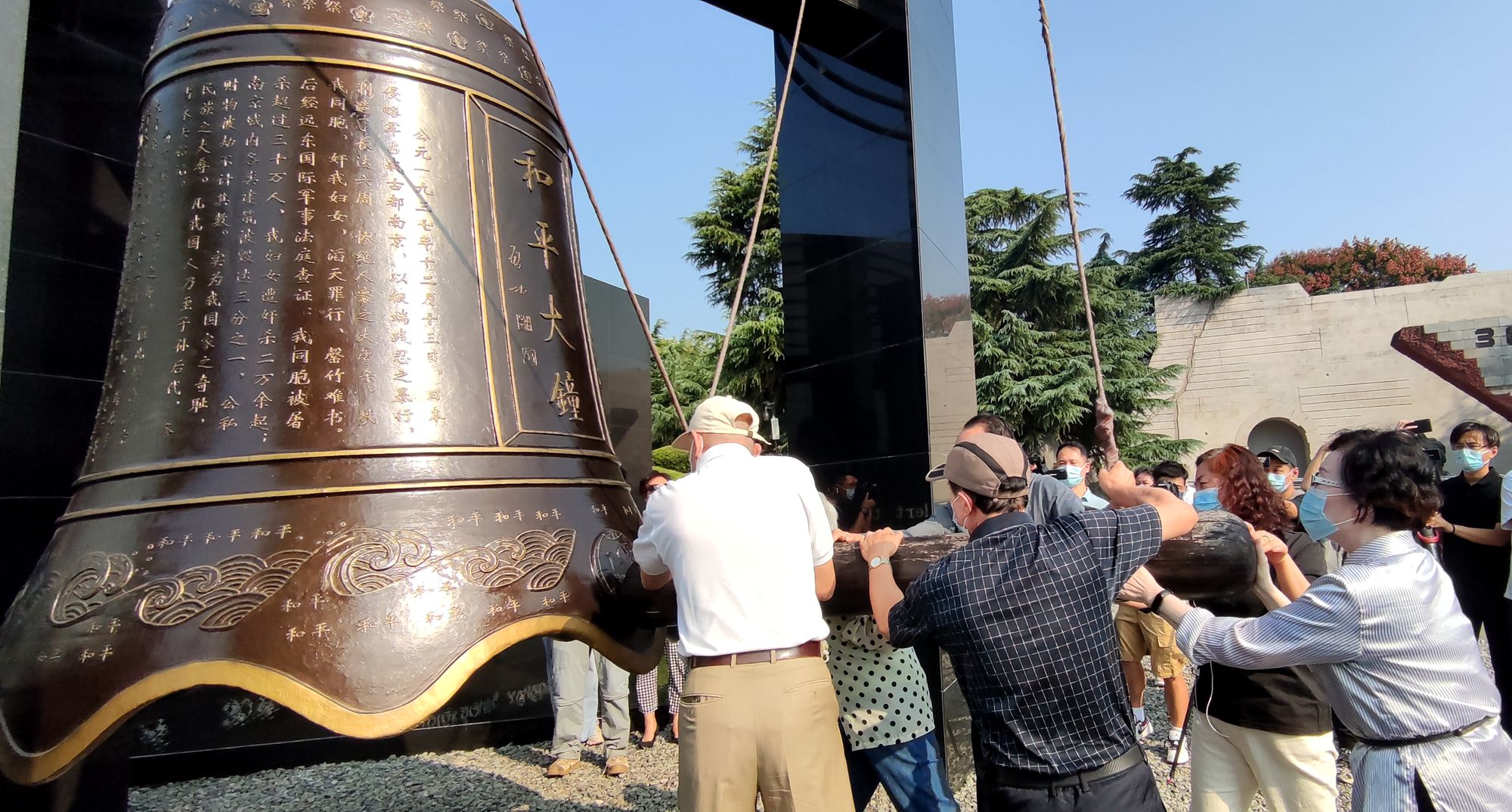 在此之前的8時30分,南京大屠殺倖存者後代代表在紀念館公祭廣場撞響和平大鐘,警示人們勿忘國恥、珍愛和平。
