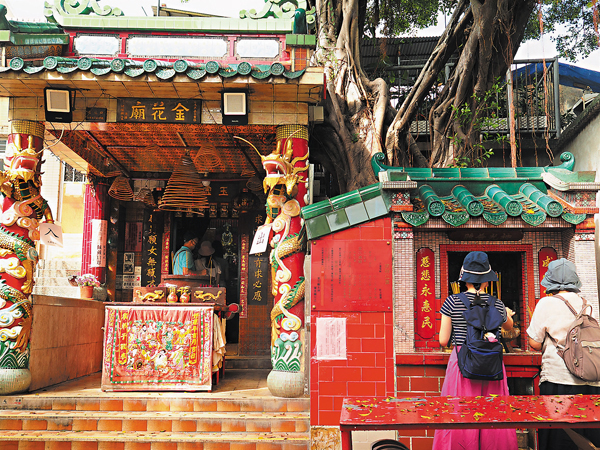 位於坪洲的金花廟主要供奉「金花娘娘」,雖然沒有金碧輝煌的裝潢、面積也不大,但早年獲已故粵劇武打影星關德興信奉,令該廟聲名大噪,吸引大批善信登島拜祭。香港文匯報記者日前到該廟觀察大半天,發現善信不絕,香火鼎盛,不時有善信向香油箱投款。廟前還有一個籌款箱,聲稱為關德興得道寶誕代點塔香,每位捐款一百元。
