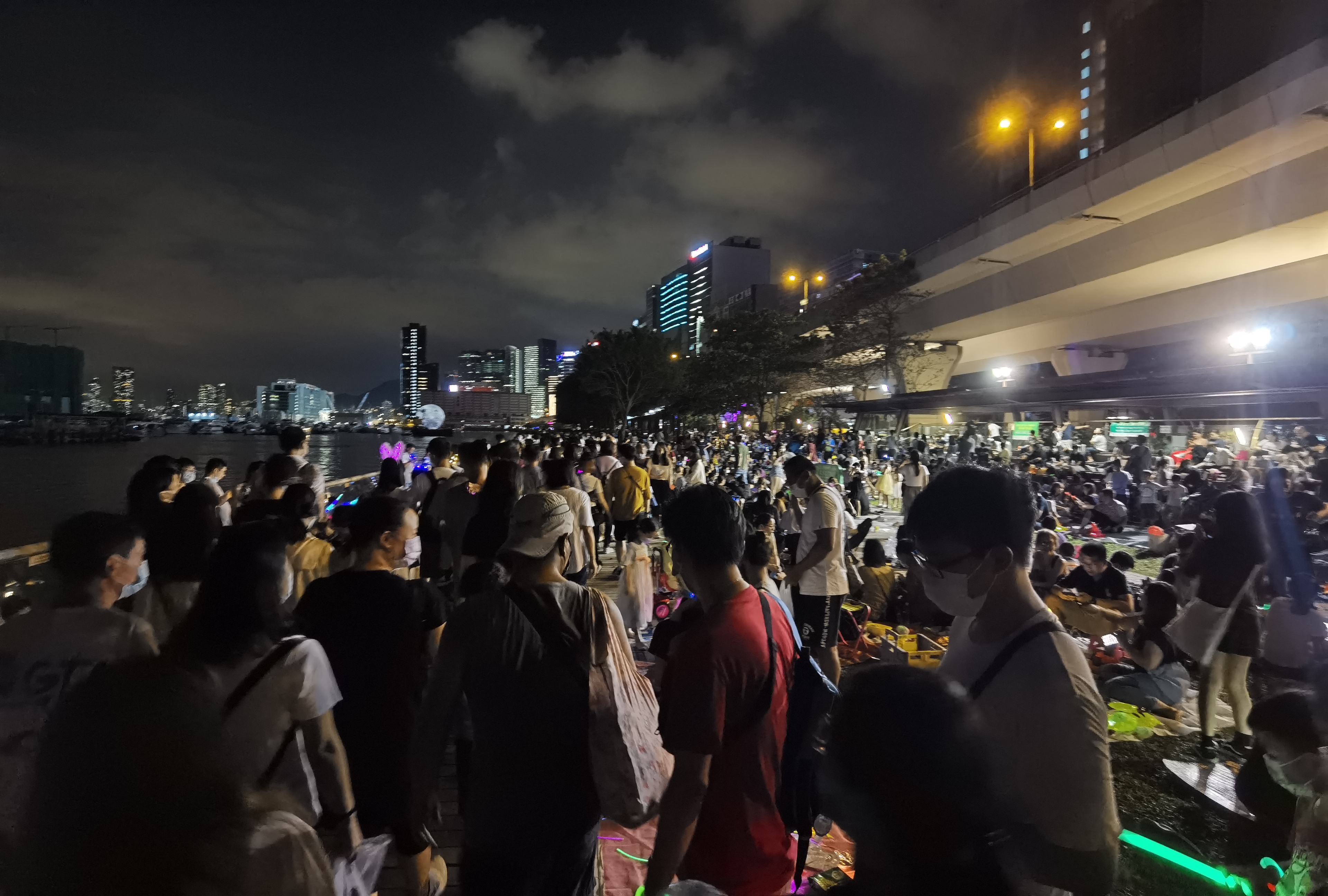 今日夜間比較多雲,賞月受影響,不過觀塘海濱設有遊戲攤位供一家大細玩樂,還有現場表演與市民同慶中秋。