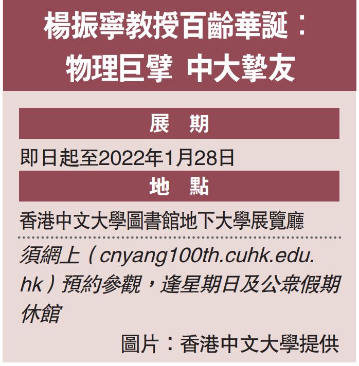 【大公報記者 徐小惠】昨日是著名物理學家、首位華人諾貝爾物理獎獲得者楊振寧99歲生辰(農曆100歲),清華大學、香港中文大學及中國物理學會聯手舉辦「楊振寧先生學術思想研討會」。清華大學校長邱勇、中國物理學會理事長張傑、香港中文大學校長段崇智等多位科學和教育界領導、著名科學家和學者,分別在清華大學及中大校園出席活動,回顧楊振寧的人生經歷和家國情懷,向他致敬及送上祝賀。楊振寧親自出席清華大學研討會現場,並回憶了他1971年首次訪問中國時與「兩彈一星」元勳鄧稼先的一段往來,以鄧稼先贈與他的兩句話「但願人長久,千里共同途」為結尾,總結他在過去50年做到了鄧稼先對他的期望。