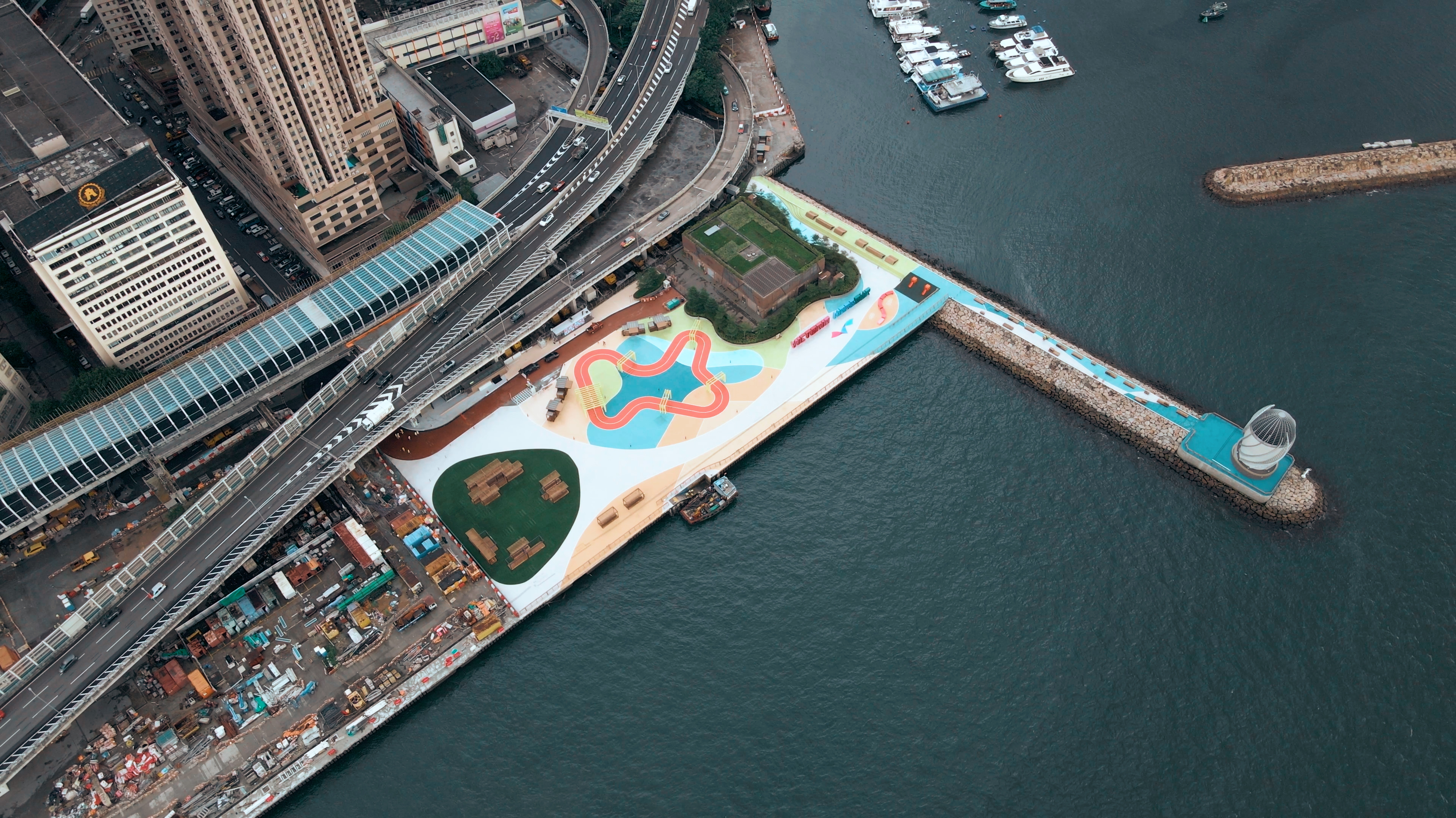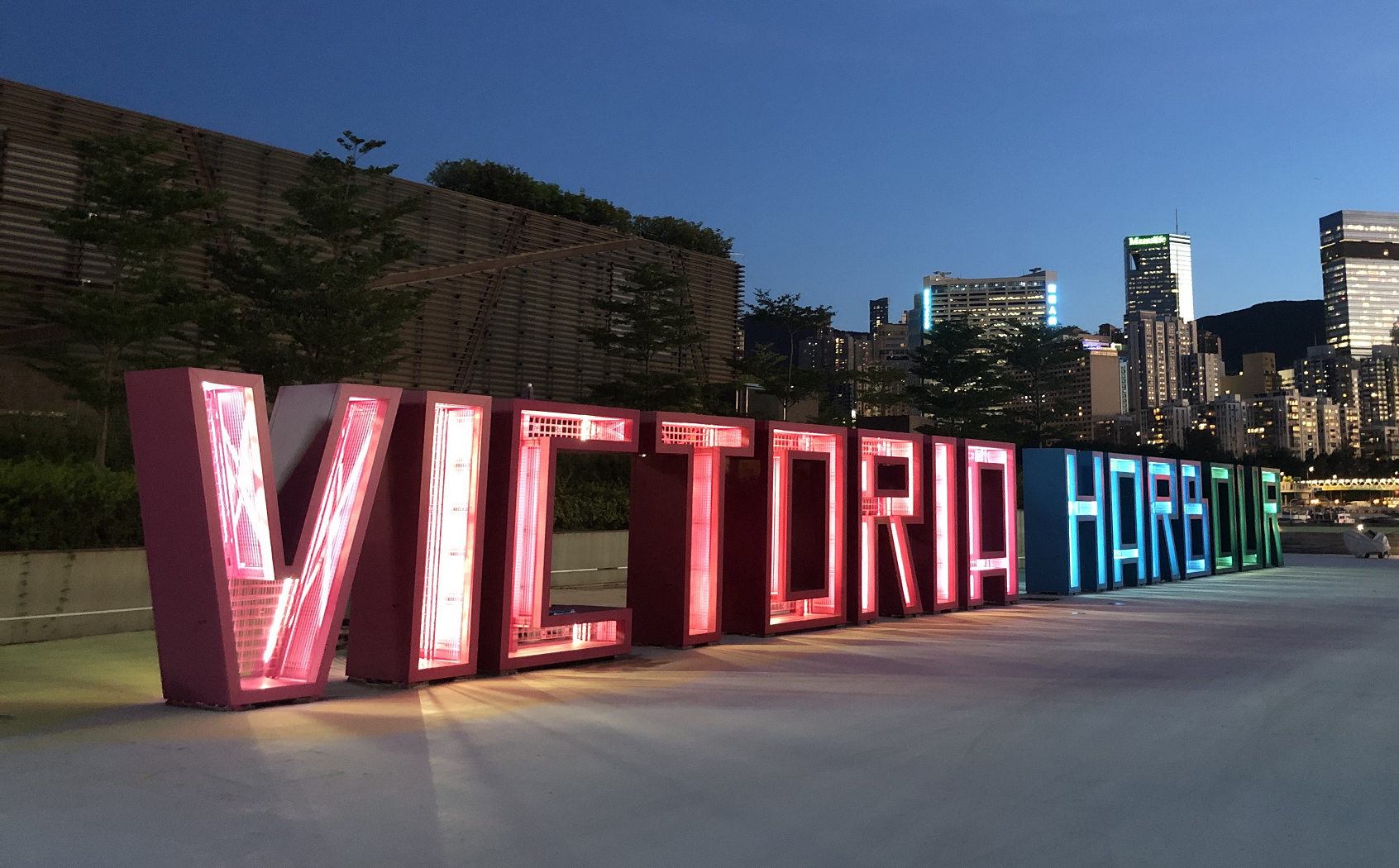 場地另一打卡點為一組以維港為主題的大型字型藝術裝置。該裝置是去年「維多利亞港」字型藝術裝置設計比賽的優勝作品,透過五光十色的字體、香港各區的中文名字及網格設計展現維港的朝氣,字體採用的空心設計則旨在鼓勵群眾走進作品之中。