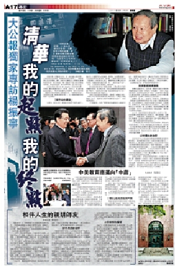 二○一一年清華大學百年校慶前夕,大公報駐京記者在清華園科學館楊振寧教授的辦公室獨家專訪了這位物理學大師。這無疑是一次幸運得到特殊關照的訪問。在眾多抵達楊振寧案頭的採訪函中,鮐背之年的先生將這唯一的機會留給大公報,我們對於這樣傳承的交情心領神會滿懷感激。