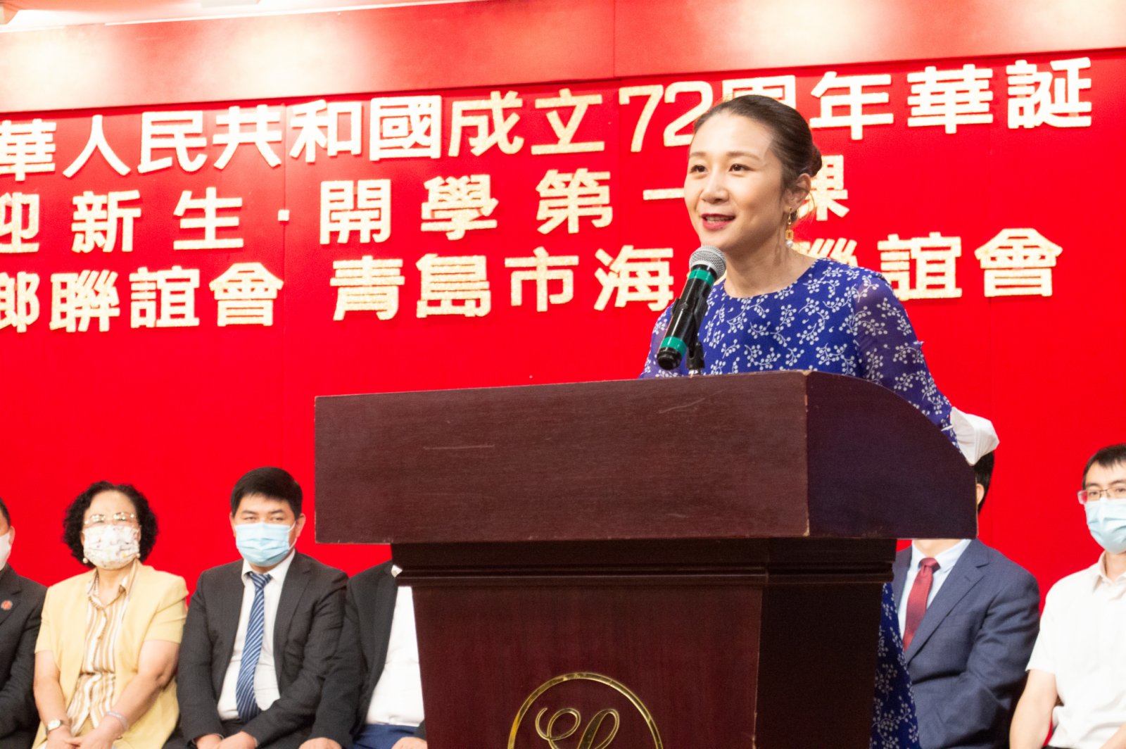 青島市委統戰部副部長、青島海外聯誼會副會長張輝通過視頻方式參加了此次主題活動並發表了熱情洋溢的講話,對青島來港就讀的同學們提出熱切期望,鼓勵大家融入國家發展大局,繼續走愛國愛港之路,並預祝同學們把香港作為自己的第二故鄉,用自己的言行展示青島學子良好形象和優秀素養,努力學習報效祖國。