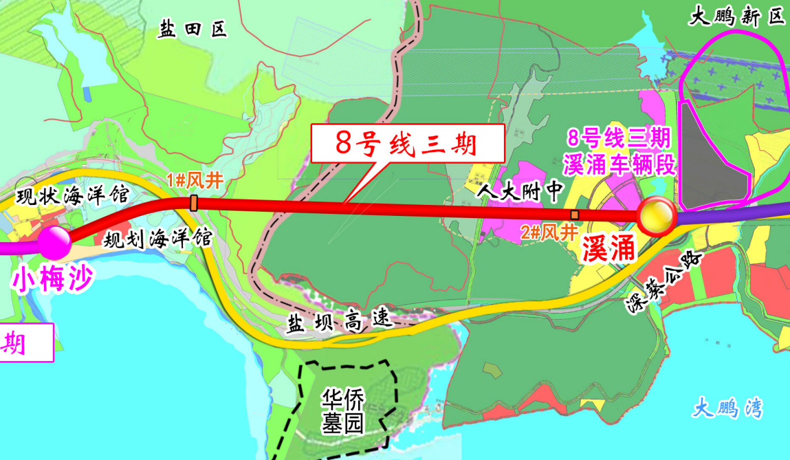 此次共有西麗綜合交通樞紐項目、深圳軌道交通8號線三期工程、鹽田港區東作業區集裝箱碼頭工程和望海路快速化改造4個綜合交通項目開工。其中,深圳軌道交通8號線三期工程項目起於鹽田區8號線二期小梅沙站,止於大鵬新區溪涌站,全長約3.7千米。主要建設內容包括地下軌道、1座地下車站、溪涌車輛段等。項目建設有利於緩解東部濱海地區交通出行壓力,優化東部地區交通結構,提升軌道交通覆蓋率;是落實「東進戰略」重要舉措,對加速濱海旅遊資源開發,促進東部地區經濟發展具有積極意義。