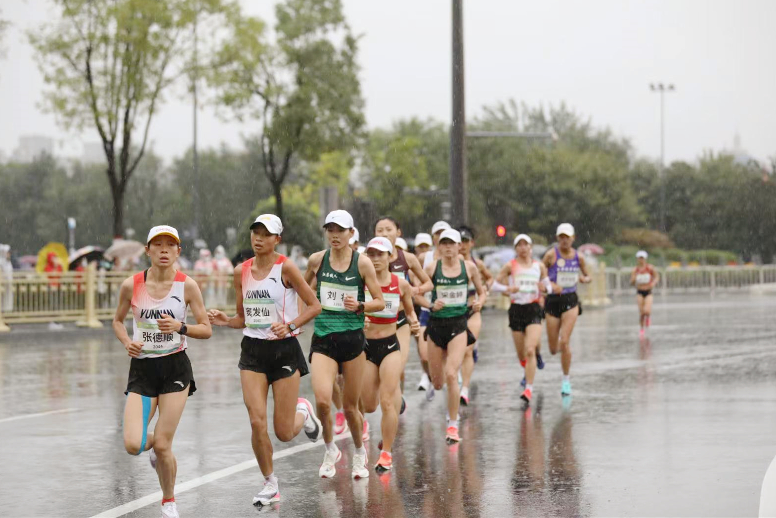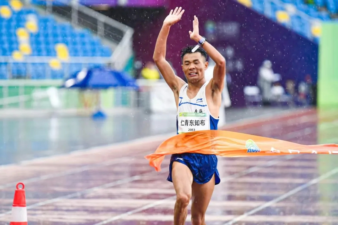 (大公文匯網記者 李陽波、張仕珍)作為全運會最後一項田徑賽事,馬拉松比賽26日在西安城牆永寧門鳴槍開跑。雖然連日來西安都是秋雨綿綿,特別是比賽日早上更是大雨滂沱,但這並沒有影響到57名參賽選手的競技狀態。最終,青海選手仁青東知布和雲南選手張德順分別獲得男女組冠軍,兩人不僅打破了上屆全運會馬拉松比賽記錄,同時也超越了東京奧運會馬拉松比賽中國選手的成績。而特別值得一提的是,在比賽的最後時刻,雖然已經跑了40多公里到達極限,但男女組衝刺時均跑出了短跑比賽衝刺的感覺,競爭異常激烈,為全國觀眾奉獻上了一場精彩的視覺盛宴。