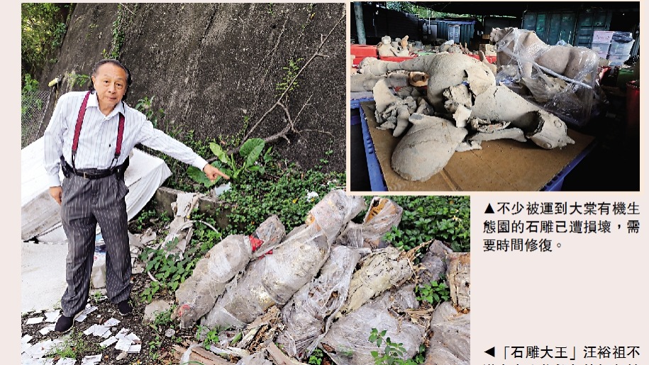 國家「十四五」規劃支持香港發展中外文化藝術交流中心,一直以來不少中外藝術品在香港展覽及拍賣,可是汪裕祖手上的大批古董石雕卻不被重視。汪裕祖帶大公報記者到園遊覽,「呢度以前係一排佛像,呢度以前有隻馬,呢度以前有幾塊逾千年歷史的石碑,每個石碑有一個獨特嘅故事,例如紀念古代慶典之類等,亦有特登喺日本『搶』購返嚟嘅六祖惠能佛像等,但而家乜都無晒!」